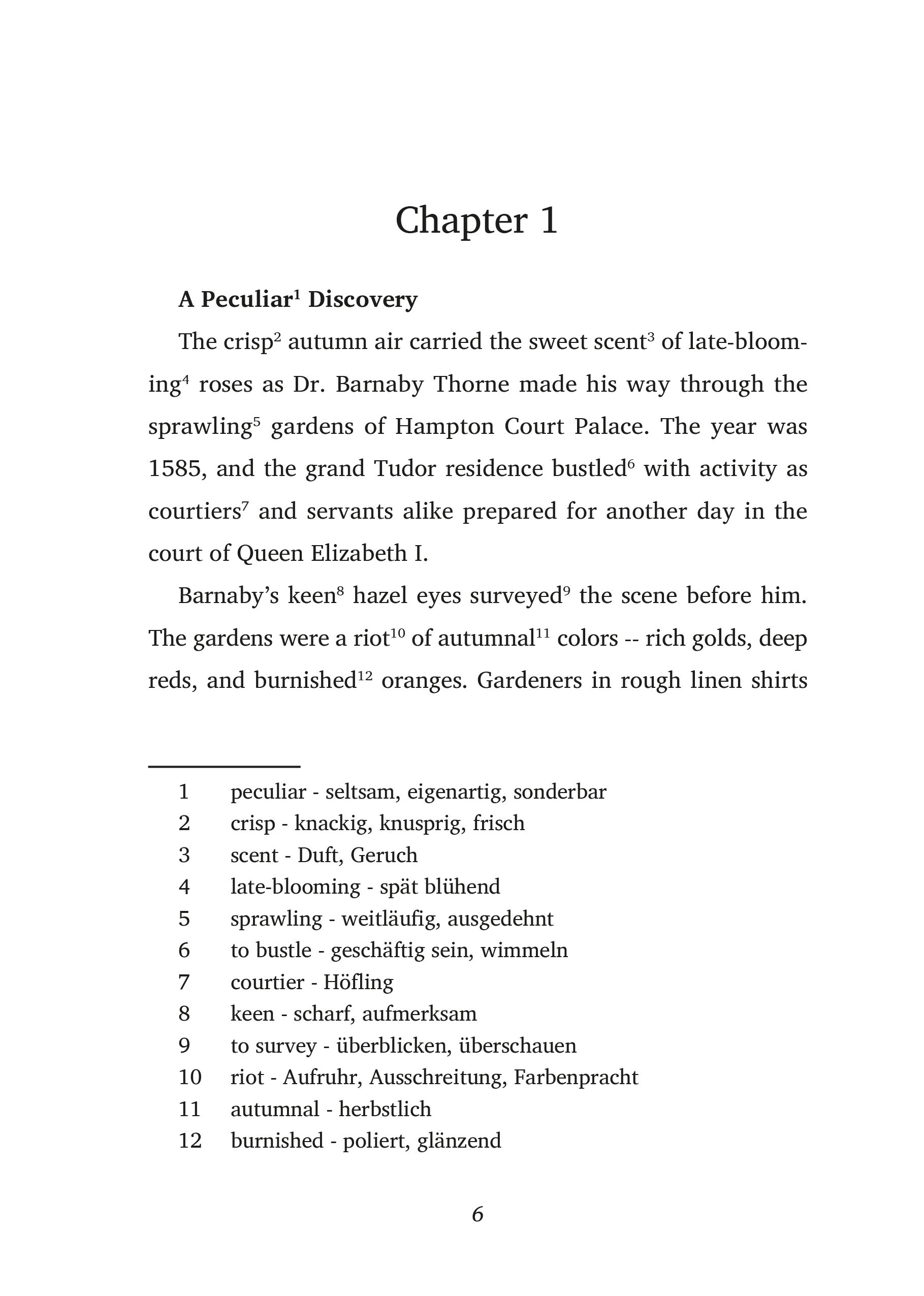 Leseprobe: https://easyoriginal.com/leseproben/DE75W.pdf The Whispering Petals - Die Flüsternden Blütenblätter Ein faszinierender historischer Thriller aus der Tudor-Zeit Hampton Court Palace, 1585: Dr. Barnaby Thorne macht eine unheimliche Entdeckung im Rosen...