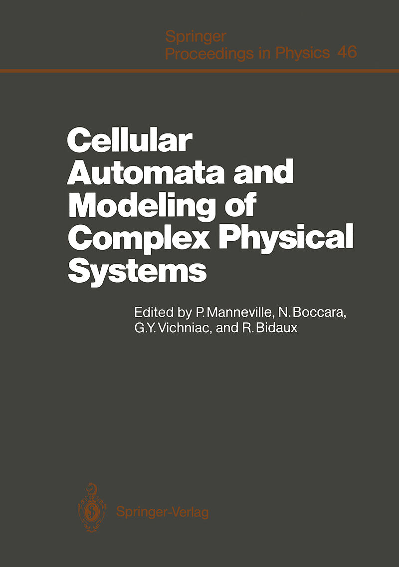 I Information Theory and Statistical Physics.- Cellular Automata, Dynamics and Complexity.- Scaling Properties of a Family of Transformations Defined on Cellular Automaton Rules.- Entropy and Correlations in Dynamical Lattice Systems.- Cellular Automata Probability Measures.- Complex Computing with Cellular Automata.- Phase Transitions of Two-State Probabilistic Cellular Automata with One Absorbing Phase.- Simulating the Ising Model on a Cellular Automaton.- Domain Growth Kinetics: Microscopic Derivation of the t1/2 Law.- Critical Behavior in Cellular Automata Models of Growth.- II Lattice Gas Theory and Direct Applications.- Deterministic Cellular Automata with Diffusive Behavior.- Cellular Automata Approach to Diffusion Problems.- Long-Time Decay of Velocity Autocorrelation Function of Two- Dimensional Lattice Gas Cellular Automata.- Evidence for Lagrangian Tails in a Lattice Gas.- The Construction of Efficient Collision Tables for Fluid Flow Computations with Cellular Automata.- Lattice Boltzmann Computing on the IBM 3090 Vector Multiprocessor.- Bibliography on Lattice Gases and Related Topics.- III Modeling of Microscopic Physical Processes.- Multi-species Lattice-Gas Automata for Realistic Fluid Dynamics.- Immiscible Lattice Gases: New Results, New Models.- Lattice Gas Simulation of 2-D Viscous Fingering.- Dynamics of Colloidal Dispersions via Lattice-Gas Models of an Incompressible Fluid.- Strings: A Cellular Automata Model of Moving Objects.- Cellular Automata Approach to Reaction-Diffusion Systems.- Simulation of Surface Reactions in Heterogeneous Catalysis: Sequential and Parallel Aspects.- IV Complex Macroscopic Behavior, Turbulence.- Periodic Orbits in a Coupled Map Lattice Model.- Phase Transitions in Convection Experiments.- Using Coupled Map Lattices to Unveil Structures in the Space of Cellular Automata.- V Design of Special-Purpose Computers.- A Cellular Automata Machine.- Index of Contributors.