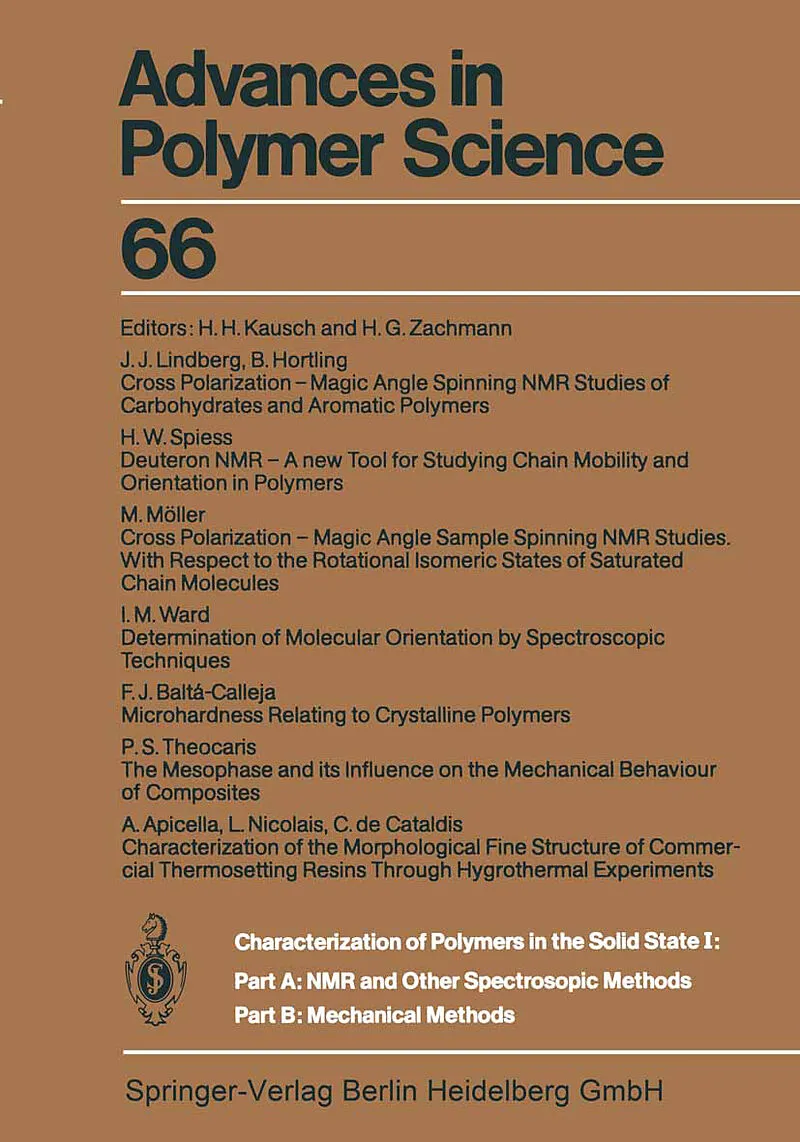 Klappentext Pt. A: NMR and other Spectroscopic Methods. Pt. B: Mechanical Methods Inhalt Cross polarization magic angle spinning NMR studies of carbohydrates and aromatic polymers.- Deuteron NMR a new tool for studying chain mobility and orientation in polymer...