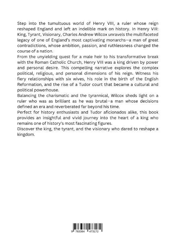 Step into the tumultuous world of Henry VIII, a ruler whose reign reshaped England and left an indelible mark on history. In Henry VIII: King, Tyrant, Visionary, Charles Andrew Wilcox unravels the multifaceted legacy of one of England's most captivating monarc...