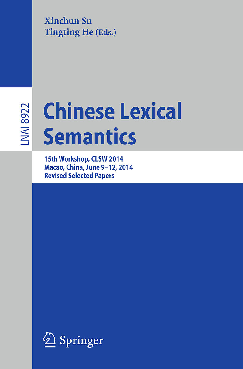 This book constitutes the proceedings of the 15 Chinese Lexical Semantics Workshop, CLSW 2014, held in Macau, China, in June 2014. The 41 regular and 3 short papers included in this volume were carefully reviewed and selected from 139 submissions. They are or...This book constitutes the proceedings of the 15 Chinese Lexical Semantics Workshop, CLSW 2014, held in Macau, China, in June 2014.