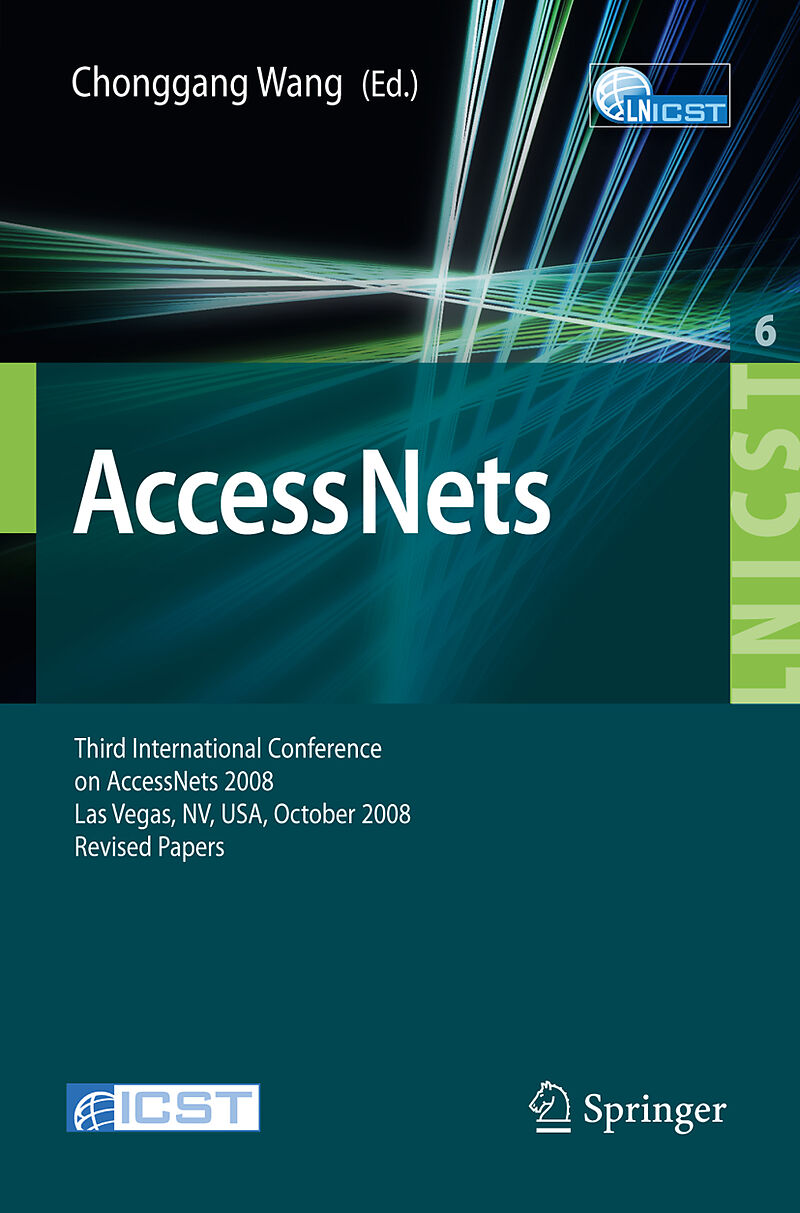 The annual International Conference on Access Networks (AccessNets) aims to provide a forum that brings together researchers and scientists from academia as well as man- ers and engineers from industry to meet and exchange ideas and recent work on all aspects ...The annual International Conference on Access Networks (AccessNets) aims to provide a forum that brings together researchers and scientists from academia as well as man- ers and engineers from industry to meet and exchange ideas and recent work on all aspects of access networks. AccessNets 2008 was the third edition of this event, which was successfully held in Las Vegas, Nevada, USA, during October 1517, 2008. The conference consisted of two keynote addresses, five invited talks, seven technical sessions, and two panel sessions. Leonid Kazovsky from Stanford University and Kevin Schneider, Chief Technology Officer of ADTRAN, delivered their exciting keynote - dresses on Future Evolution of Broadband Access, and Carrier Ethernet and the Evo- ing Access Networks, respectively. Maurice Gagnaire, Martin Reisslein, Martin Maier, Paolo Giacomazzi, and John M. Cioffi gave interesting invited talks on different research topics on access networks. The technical papers presented original and fundamental - search advances in the area of access networks, while the panels focused on the interesting topics of Fiber Assisted Wireless for Broadband Access Networks and Dynamic Spectrum Management (DSM) Successes. These conference proceedings include all the technical papers that were presented at AccessNets 2008. We hope that it will become a useful reference for researchers and practitioners working in the area of access networks.