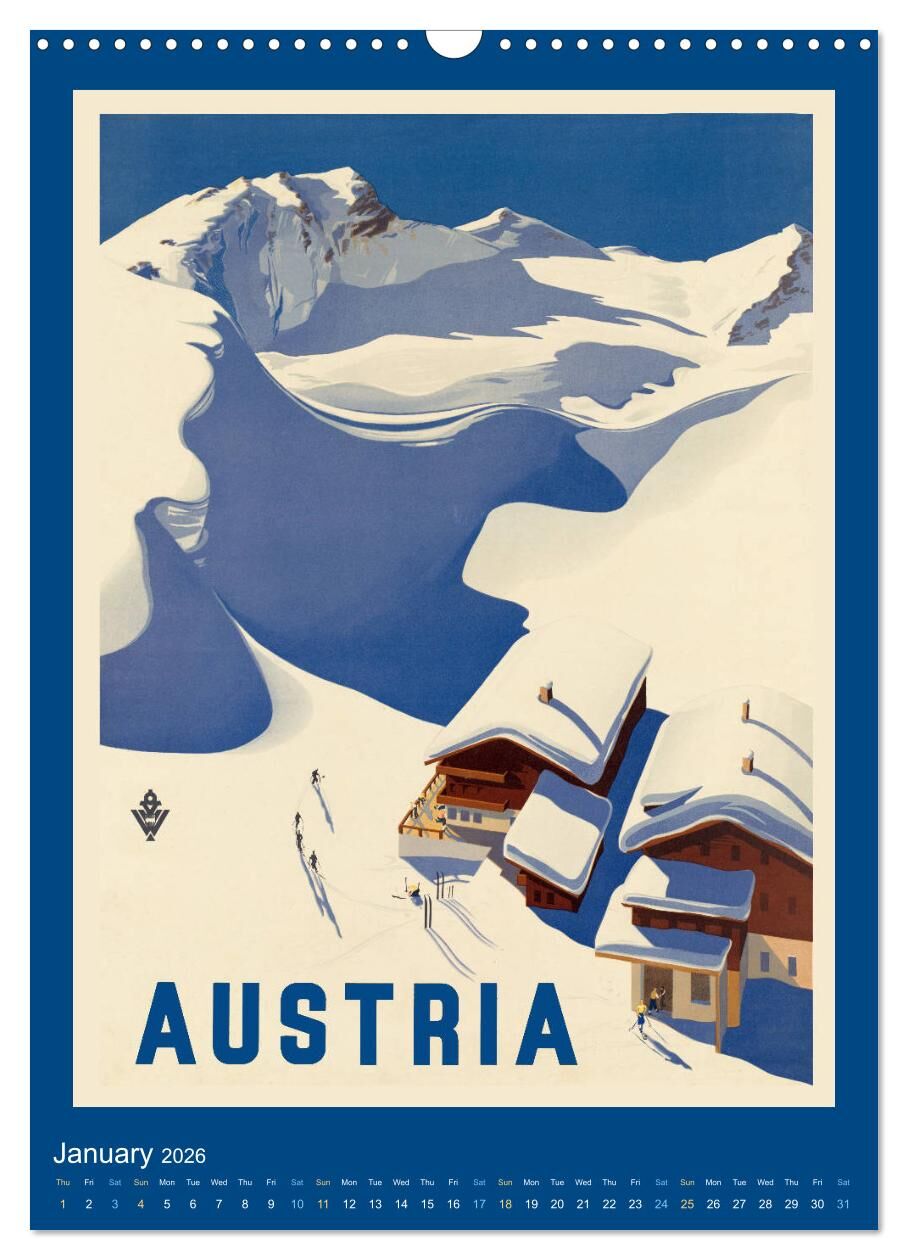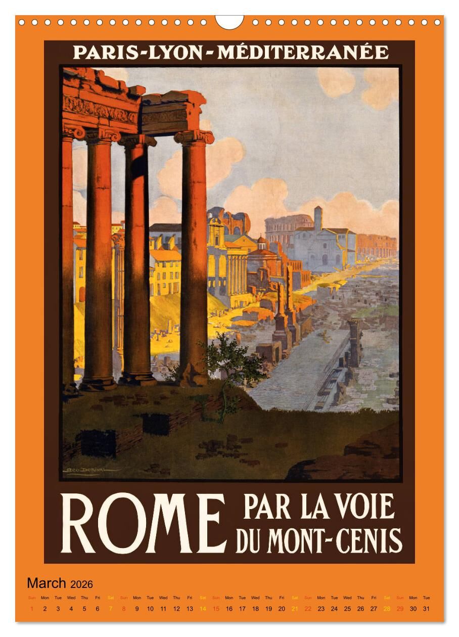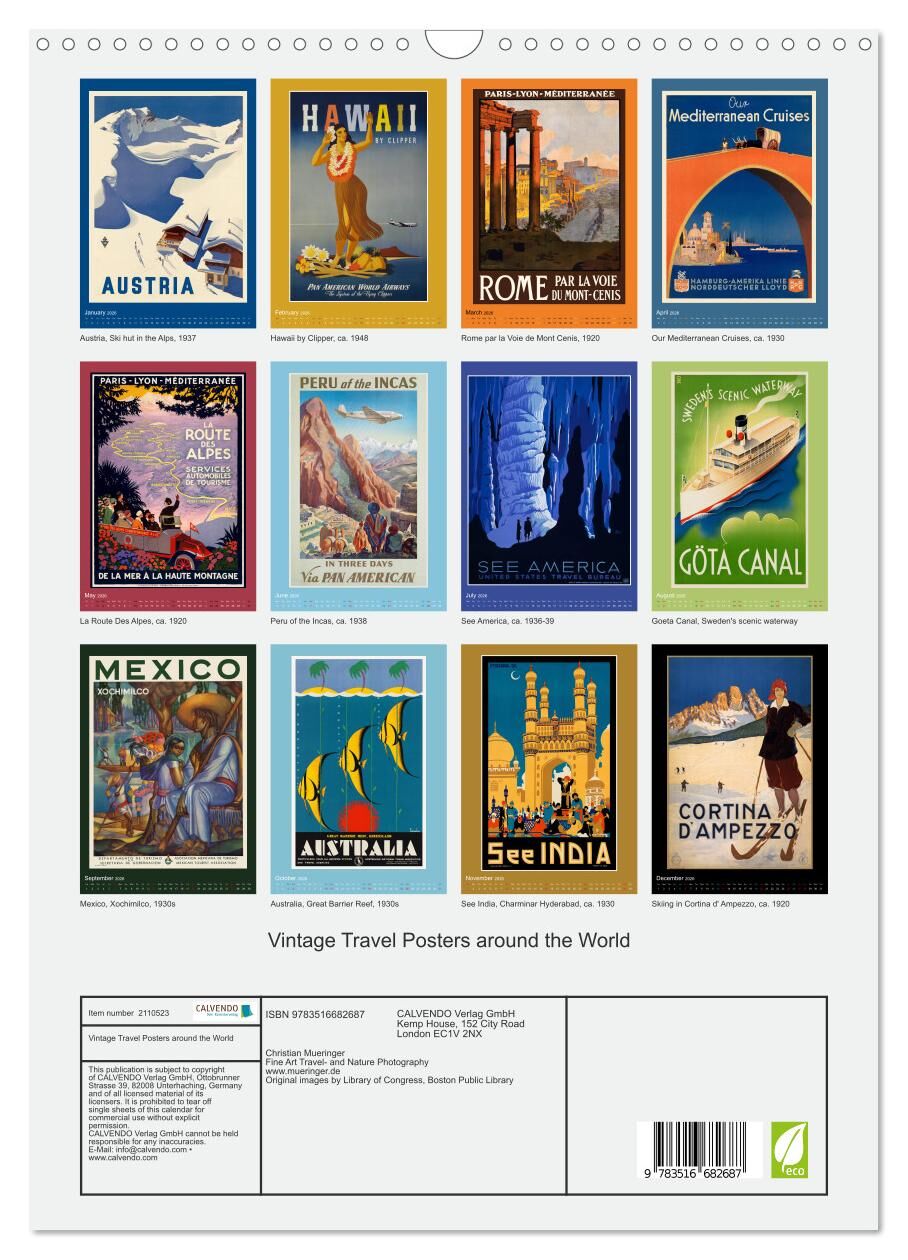 Imagine the time 80 or 100 years ago when travelling was exclusive and sometimes an adventure. The advertising for travel destinations in these times were created by great artist and designers. The Calendar features vintage travel posters from various destinat...
