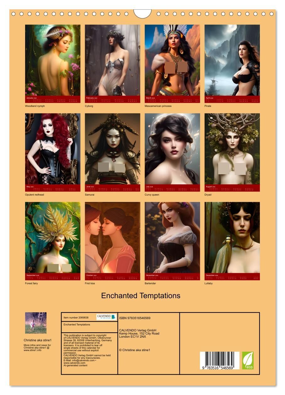 Immerse yourself in a world of enchanting allure with the Enchanted Temptations calendar. This captivating collection features stunning digital art created by Christine aka stine1, in collaboration with artificial intelligence. Each month unveils a mesmerizing...