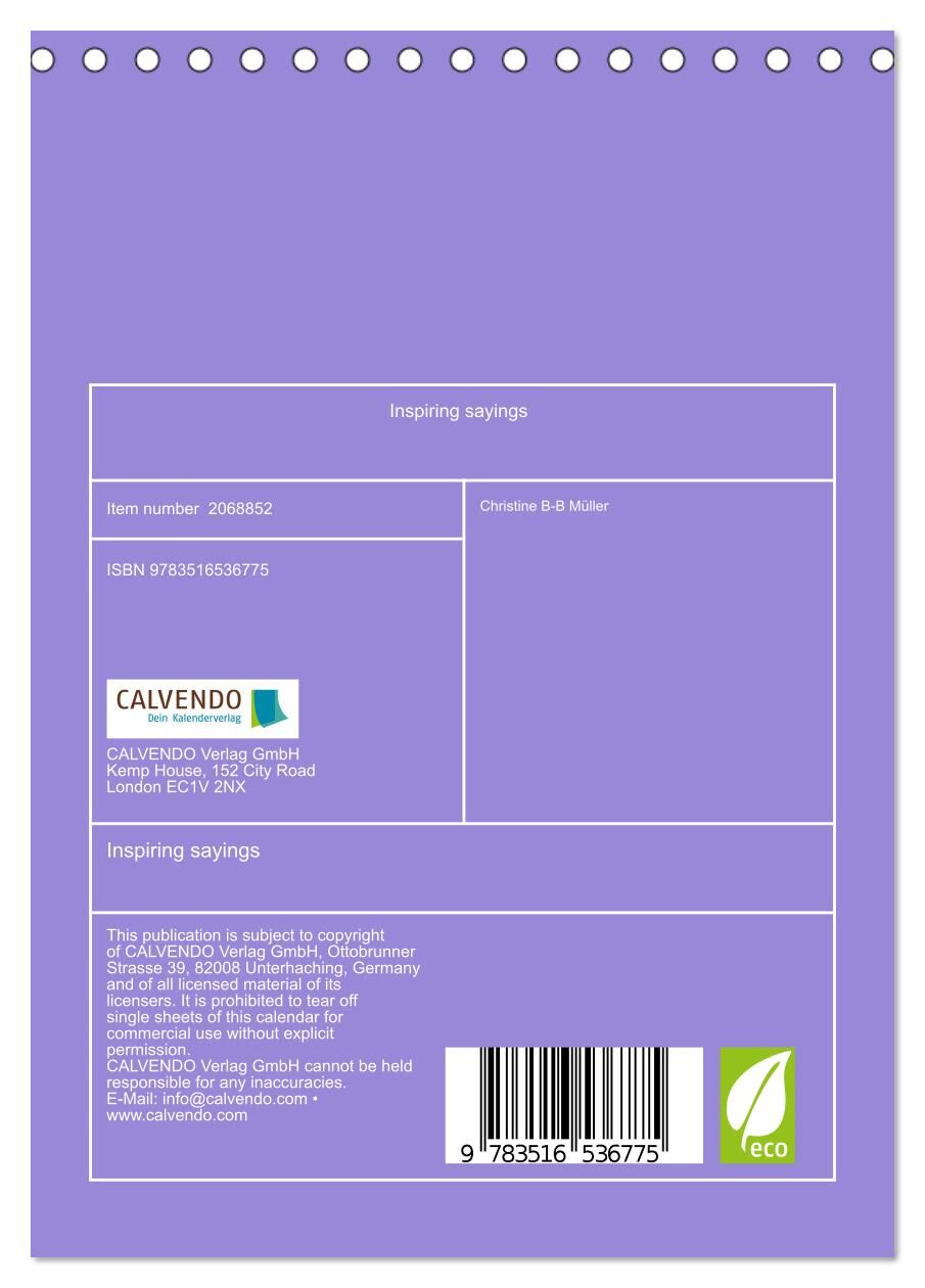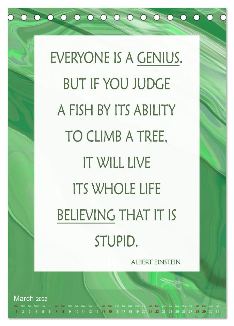 Love, peace, freedom, recognition, emancipation, serenity, humor and much more are human issues that concern us all. In this calendar, you will find a number of apt statements by well-known personalities. Let yourself be inspired to reflect by a different topi...