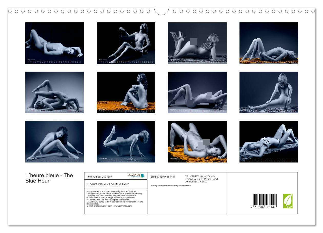 The highly erotic yet aesthetic photos in this calendar show a succession of interesting models who draw in viewers with their lascivious, ostentatious and suspenseful body positions. The effect of this nude and partly-nude photography as a genre of artistic p...