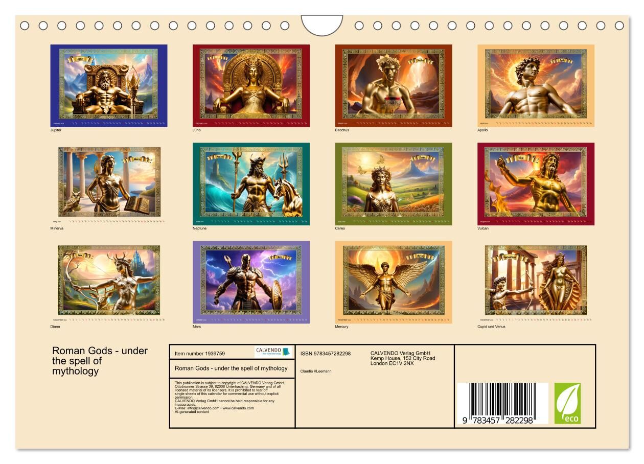 Roman Gods - under the spell of mythology (Wall Calendar 2026 DIN A4 landscape), CALVENDO 12 Month Wall Calendar