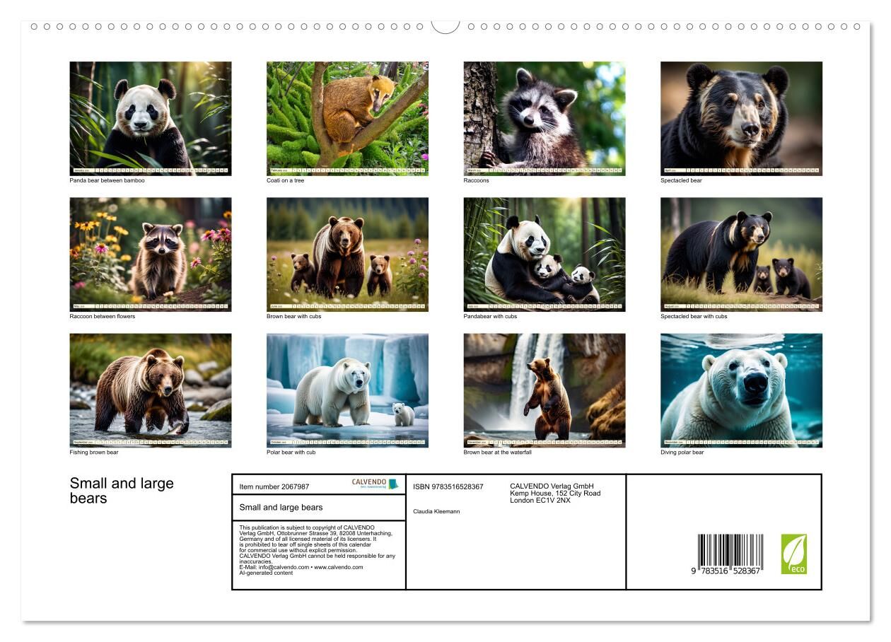 The large bears include brown bears, polar bears and the rare giant pandas. They can reach an impressive size of up to 3 metres and weigh over 500 kilograms. These bears are usually very powerful and have an impressive stature. Small bears, on the other hand, ...