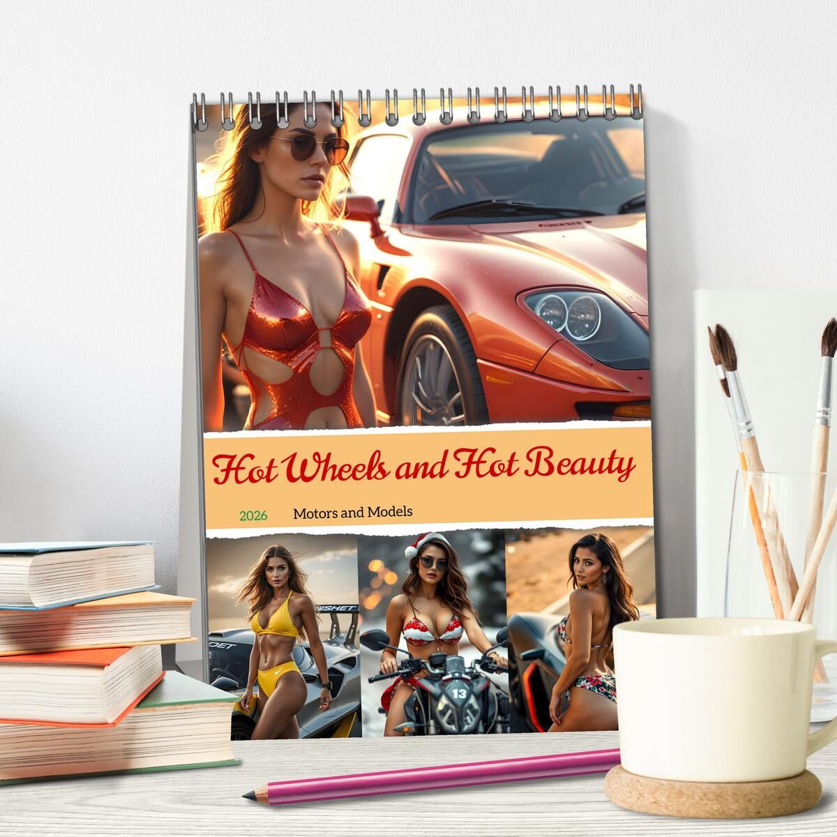 Hot Wheels and Hot Beauty - Motors and Models (Desk Calendar 2026 DIN A5 portrait), CALVENDO 12 Month DeskCalendar