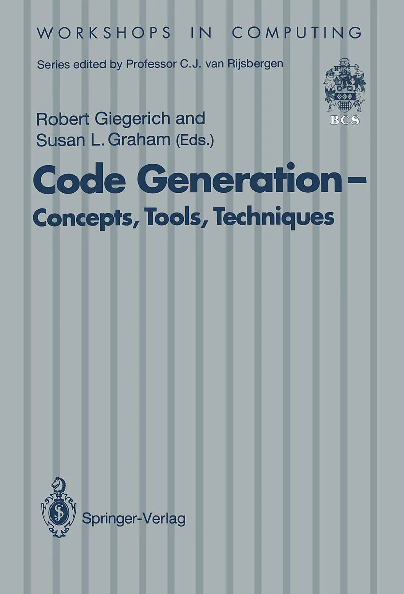 Code Generation - Concepts, Tools, Techniques is based upon the proceedings of the Dagstuhl workshop on code generation which took place from 20-24 May 1991. The aim of the workshop was to evaluate current methods of code generation and to indicate the main di...Code Generation - Concepts, Tools, Techniques is based upon the proceedings of the Dagstuhl workshop on code generation which took place from 20-24 May 1991. The aim of the workshop was to evaluate current methods of code generation and to indicate the main directions which future research is likely to take. It provided an excellent forum for the exchange of ideas and had the added advantage of bringing together European and American experts who were unlikely to meet at less specialised gatherings. This volume contains 14 of the 30 papers presented at the Dagstuhl workshop. The papers deal mainly with the following four topics: tools and techniques for code generation, code generation for parallel architectures, register allocation and phase ordering problems, and formal methods and validations. Most of the papers assess the progress of on-going research work, much of which is published here for the first time, while others provide a review of recently completed projects. The volume also contains summaries of two discussion groups which looked at code generation tools and parallel architectures. As a direct result of one of these discussions, a group of the participants have collaborated to make a pure BURS system available for public distribution. This system, named BURG, is currently being beta-tested. Code Generation - Concepts, Tools, Techniques provides a representative summary of state-of-the-art code generation techniques and an important assessment of possible future innovations. It will be an invaluable reference work for researchers and practitioners in this important area.