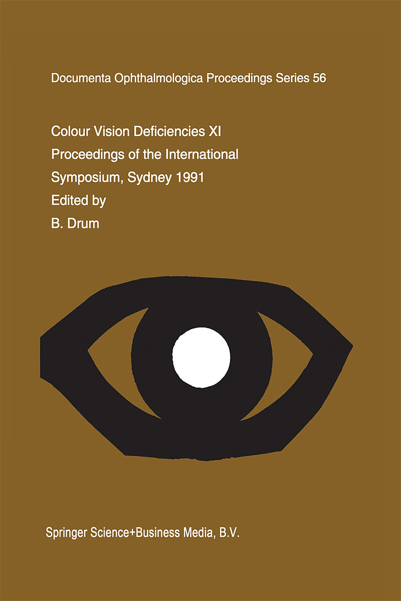 The eleventh Symposium of the International Research Group on Colour Vision Deficiencies (IRGCVD) was held 20-23 June 1991 in Sydney, Aus tralia, ably hosted by local organizer Stephen Dain. A total of 35 talks and 10 posters were presented. Papers based on 37...The eleventh Symposium of the International Research Group on Colour Vision Deficiencies (IRGCVD) was held 20-23 June 1991 in Sydney, Aus tralia, ably hosted by local organizer Stephen Dain. A total of 35 talks and 10 posters were presented. Papers based on 37 of these presentations are included here, in Colour Vision Deficiencies XI. The scientific program featured sessions on three special topics, with each topic highlighted by an invited speaker. The opening session on the Genetics of congenital colour vision deficiencies began with a superb invited lecture by Charles Weitz about his pioneering work on the molecular genetics of tritanopia. The session on the second special topic, Spatial aspects of colour vision, began with the launching of a new IRGCVD tradition, as 1991 Verriest Memorial Award recipient Harry Sperling presented the first Ver riest Memorial Lecture on his recent studies of spatial discrimination of heterochromatic stimuli. Dr. Sperling reported new evidence that certain asymmetries in red-green opponent colour vision can be explained by the spatial organization of colour-opponent retinal neurons. In the third special session, on Occupational aspects of colour vision, Barry Cole took the audi ence on a fascinating tour of the historical development of colour vision standards in his invited lecture entitled 'Does defective colour vision really matter?'. In addition to the three special topics, many interesting presentations were given in topical sessions on Variations in normal colour vision, Acquired colour vision deficiencies and Colour vision tests and testing methods.