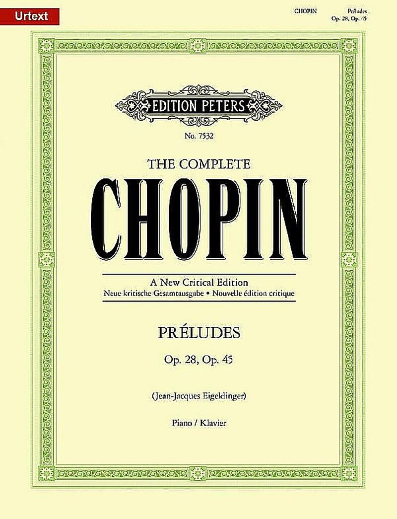 Mit der Veröffentlichung der Préludes op. 28, op. 45 erscheint eine weitere Schlüsselausgabe der renommierten Reihe The Complete Chopin - A New Critical Edition. Chopins Préludes markieren einen entscheidenden Wendepunkt in der Geschichte dieser Gattung: Mit diesem Werk wird das eher zweckmäÃige Präludium zu einer eigenständigen Ausdrucksform. In den Worten von Franz Liszt sind sie "poetische Präludien, wie die eines groÃen zeitgenössischen Dichters, der die Seele in goldene Träume wiegt und sie in die Höhen des Ideals erhebt." Diese Urtext-Ausgabe, herausgegeben von Jean-Jacques Eigeldinger, enthält die Préludes sowie ein Vorwort und einen kritischen Kommentar.