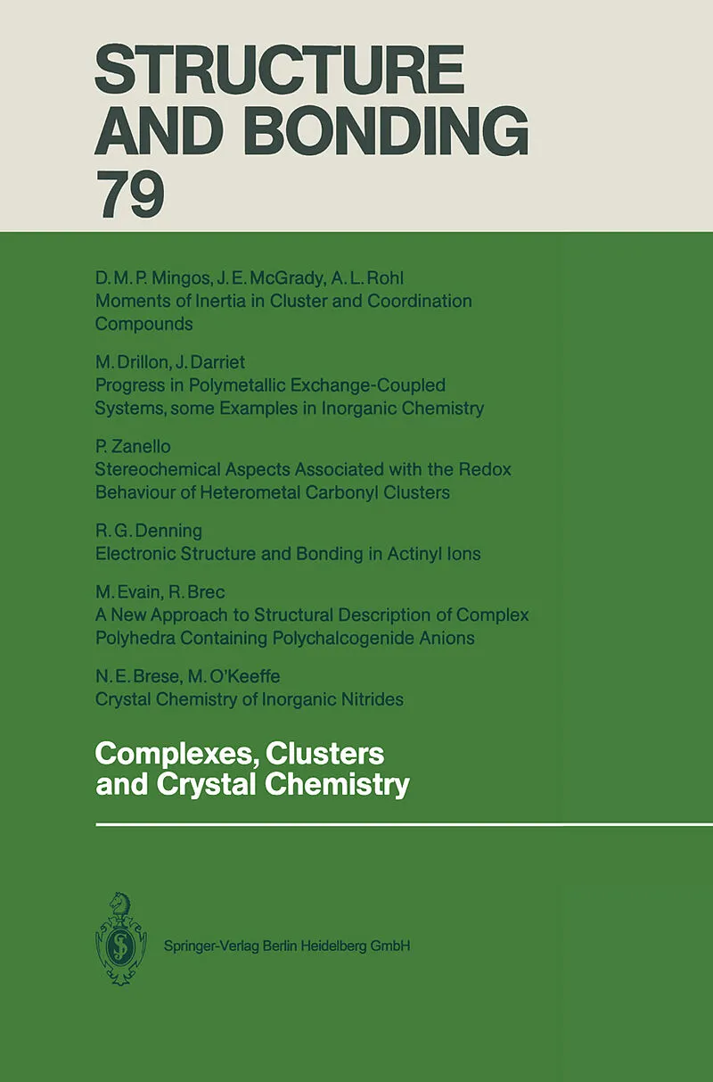 1. D.M.P. Mingos, J.E. McGrady, A. L. Rohl Moments of Inertia in Cluster and Coordination Compounds 2. M. Drillon, J. Darriet Progress in Polymetallic Exchange-Coupled Systems, Some Examples in Inorganic Chemistry 3. P. Zanello Stereochemical Aspects Associate...