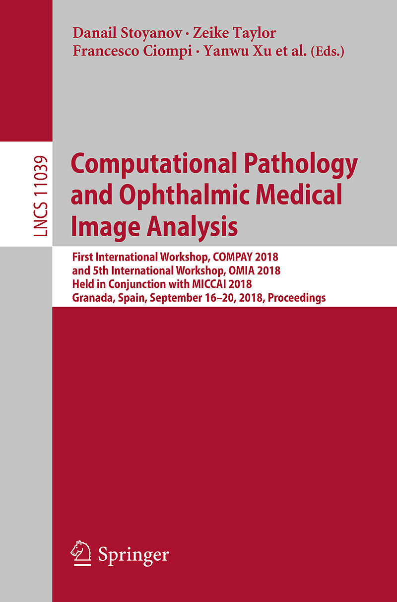 Improving Accuracy of Nuclei Segmentation by Reducing Histological Image Variability.- Multi-Resolution Networks for Semantic Segmentation in Whole Slide Images.- Improving High Resolution Histology Image Classification with Deep Spatial Fusion Network.- Construction of a Generative Model of H&E Stained Pathology Images of Pancreas Tumors Conditioned by a Voxel Value of MRI Image.- Accurate 3D reconstruction of a whole pancreatic cancer tumor from pathology images with different stains.- Role of Task Complexity and Training in Crowdsourced Image Annotation.- Capturing global spatial context for accurate cell classification in skin cancer histology.- Exploiting Multiple Color Representations to Improve Colon Cancer Detection in Whole Slide H&E Stains.- Leveraging Unlabeled Whole-Slide-Images for Mitosis Detection.- Evaluating Out-of-the-box Methods for the Classification of Hematopoietic Cells in Images of Stained Bone Marrow.- DeepCerv: Deep neural network for segmentation free robustcervical cell classification.- Whole slide image registration for the study of tumor heterogeneity.- Modality Conversion from Pathological Image to Ultrasonic Image Using Convolutional Neural Network.- Structure instance segmentation in renal tissue: a case study on tubular immune cell detection.- Cellular Community Detection for Tissue Phenotyping in Histology Images.- Automatic Detection of Tumor Budding in Colorectal Carcinoma with Deep Learning.- Significance of Hyperparameter Optimization for Metastasis Detection in Breast Histology Images.- Image Magnification Regression Using DenseNet for Exploiting Histopathology Open Access Content.- Uncertainty Driven Pooling Network for Microvessel Segmentation in Routine Histology Images.- Ocular Structures Segmentation from Multi-sequences MRI using 3D Unet with Fully Connected CRFs.- Classification of Findings with Localized Lesions in Fundoscopic Images using a Regionally Guided CNN.- Segmentation of Corneal Nerves Using a U-Net-based Convolutional Neural Network.- Automatic Pigmentation Grading of the Trabecular Meshwork in Gonioscopic Images.- Large Receptive Field Fully Convolutional Network for Semantic Segmentation of Retinal Vasculature in Fundus Images.- Explaining Convolutional Neural Networks for Area Estimation of Choroidal Neovascularization via Genetic Programming.- Joint Segmentation and Uncertainty Visualization of Retinal Layers in Optical Coherence Tomography Images using Bayesian Deep Learning.- cGAN-based lacquer cracks segmentation in ICGA image.- Localizing Optic Disc and Cup for Glaucoma Screening via Deep Object Detection Networks.- Fundus Image Quality-guided Diabetic Retinopathy Grading.- DeepDisc: Optic Disc Segmentation based on Atrous Convolution and Spatial Pyramid Pooling.- Large-scale Left and Right Eye Classification in Retinal Images.- Automatic Segmentation of Cortex and Nucleus in Anterior Segment OCT Images.- Local Estimation of the Degree of Optic Disc Swelling from Color Fundus Photography.- Visual Field based Automatic Diagnosis of Glaucoma Using Deep Convolutional Neural Network.- Towards standardization of retinal vascular measurements: on the effect of image centering.- Feasibility study of Subfoveal Choroidal Thickness Changes in Spectral-Domain Optical Coherence Tomography Measurements of Macular Telangiectasia Type 2.- Segmentation of retinal layers in OCT images of the mouse eye utilizing polarization contrast.- Glaucoma Diagnosis from Eye Fundus Images Based on Deep Morphometric Feature Estimation.- 2D Modeling and Correction of Fan-beam Scan Geometry in OCT.- A Bottom-up Saliency Estimation Approach for Neonatal Retinal Images.