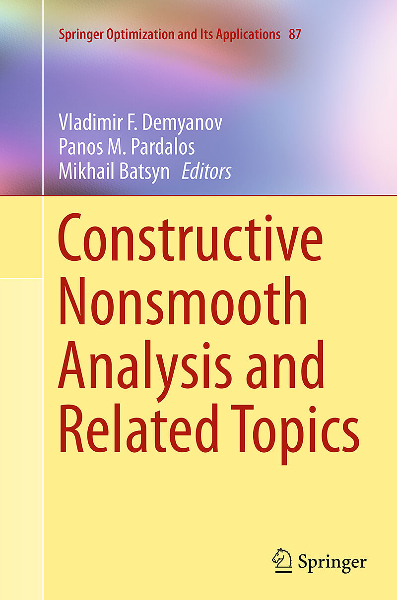 Constructive Noonsmooth Analysis and Related Topics (V. Demyanov, P.M. Pardalos, M. Batsyn).- Use Model Theory in Nonsmooth Analysis (S.S. Kutateladze).- Demyanov Difference in Infinite Dimensional Spaces (J. Grzybowski, D. Pallaschke, R. Urbanski).- Separable Reduction of Metric Regularity Properties (A.D. Ioffe).- Construction of Pairs of Reproducing Kernel Banach Spaces (P.G. Georgiev, L. Sanchez-Gonzalez, P.M. Pardalos).- On the Regularization Method in Nondifferentiable Optimization Applied to Hemivariational Inequalities (N. Ovcharova, J. Gwinner).- Dynamics and Optimization of Multibody Systems in the Presence of Dry Friction (F.L. Chemousko).- Method of Steepest Descent for Two-Dimensional Problems of Calculus in Variations (M.V. Dolgopolik, G.Sh.Tamasyan).- On a Quantitative Semicontinuity Property of Variational Systems with Applications to Perturbed Quasidifferentiable Optimization (A. Uderzo).- Some Remarks on Bi-Level Vector Extremum Problems (C. Antoni, F. Giannessi).- Well-Posedness for Lexicographic Vector Equilibrium Problems (L.Q. Anh, T.Q. Duy, A.Y. Kruger, N.H. Thao).- The Best Linear Separation of Two Sets (V.N. Malozemov, E.K. Cherneutsanu).- Alternance Form of Optimality Conditions in the Finite-Dimensional Space (V.F. Demyanov, V.N. Malozemov).- Optimal Multiple Decision Statistical Procedure for Inverse Covariance Matrix (A.P. Koldanov, P.A. Koldanov).- Conciliating Generalized Derivatives (J.-P. Penot).- The Nonsmooth Path of Alex M. Rubinov (S.S. Kutateladze).- Two Giants From St. Petersburg (S.S. Kututeladze).- Convex Analysis and Optimization in the Past 50 Years: Some Snapshots (J.-B. Hiriart-Urruty).