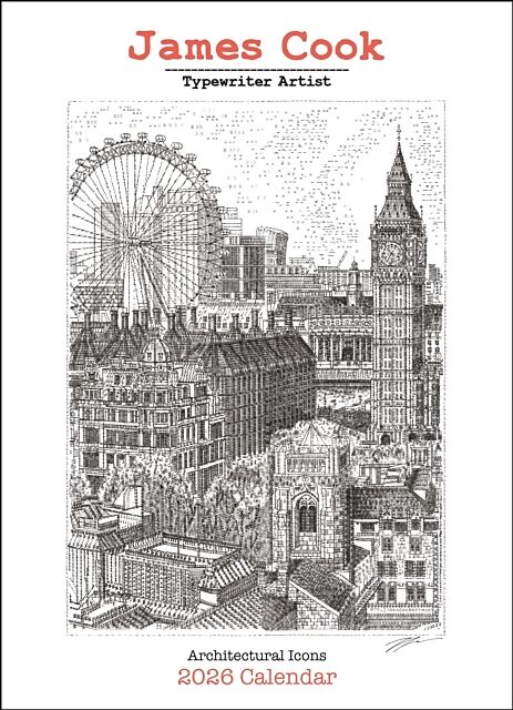 Zusammenfassung Typewriter "drawings" of well-known landmarks by James Cook. The James Cook Typewriter Artist 2026 Wall Calendar features iconic landmarks and places such as the Arc de Triomphe and the Empire State Building. Includes 10.5" x 14.5" (10.5" x 29"...