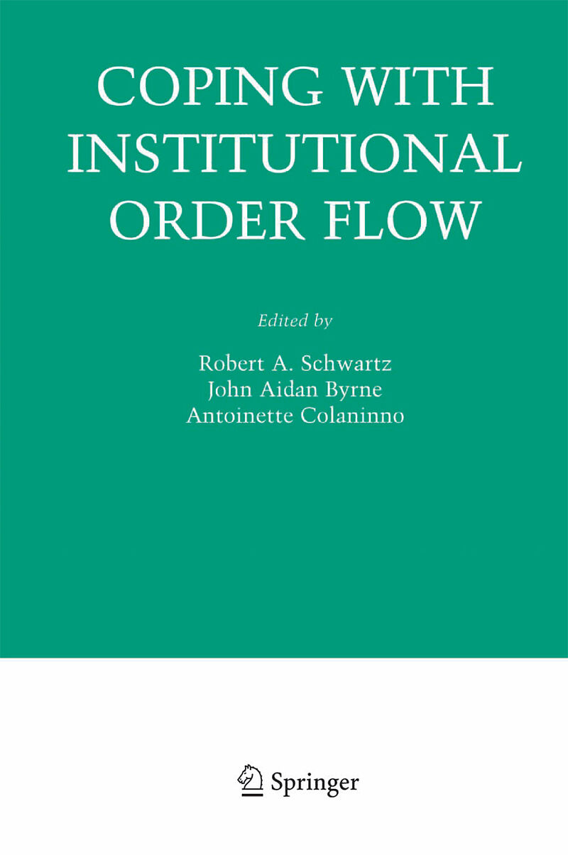 On April 29, 2003, the Zicklin School of Business hosted a trading conference titled, Coping With Institutional Order Flow. This conference was electronically recorded and later transcribed for this book. The text includes the edited transcript of the panel di...On April 29, 2003, the Zicklin School of Business hosted a trading conference titled, Coping With Institutional Order Flow. This conference was electronically recorded and later transcribed for this book. The text includes the edited transcript of the panel discussions and separate presentations by two major industry executives, Richard Ketchum' and Robert Mc Sweeney. As with the other volumes in this popular series, this book is not simply intended to be an historical record of the conference. We have edited the manuscript for clarity, perspective and context. New material was gathered in subsequent interviews with many of the panelists. Consequently, some remarks and passages in the text were altered and expanded and many footnotes were introduced. Our goal was to flesh out the dialogue and presentations and to keep the material as contemporary as possible. In doing so, we went to great lengths to preserve the essential nature of the original debate. We worked closely with the panelists in the editing process and took pains not to distort the meaning of their remarks. They have all approved the final draft of the manuscript. We thank them for their assistance and patience. \n my opening remarks at the conference, I suggested that effective handling of institutional order flow is one of the most important and difficult At the time of the conference, Richard Ketchum was President and Deputy Chairman at The Nasdaq Stock Market, Inc. Preface xiv challenges facing our equity markets today.