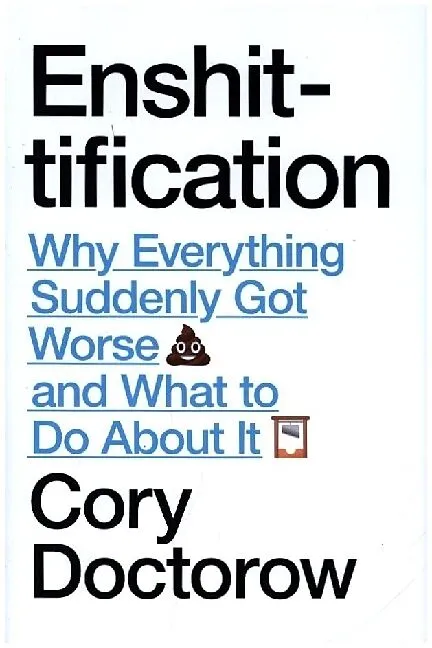 "Enshittification" is Doctorow's word to describe the decay of online platforms, from exciting novelty to everyday essential, to what we have today. "Enshittification" has been word of the year in the UK, USA and Australia. It's been printed in the pages of the FT and declaimed from podiums at the EU. As a word, it captures the feeling of a world that is ever worsening. As an idea, it explains why it's getting worse, whose fault that is, and what to do about the misogyny, conspiratorialism, surveillance, manipulation, and fraud that have taken over the internet.