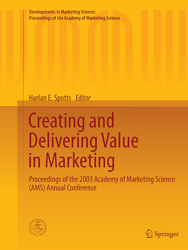 This volume includes the full proceedings from the 2003 Academy of Marketing Science (AMS) Annual Conference held in Washington, D.C., entitled Creating and Delivering Value in Marketing.