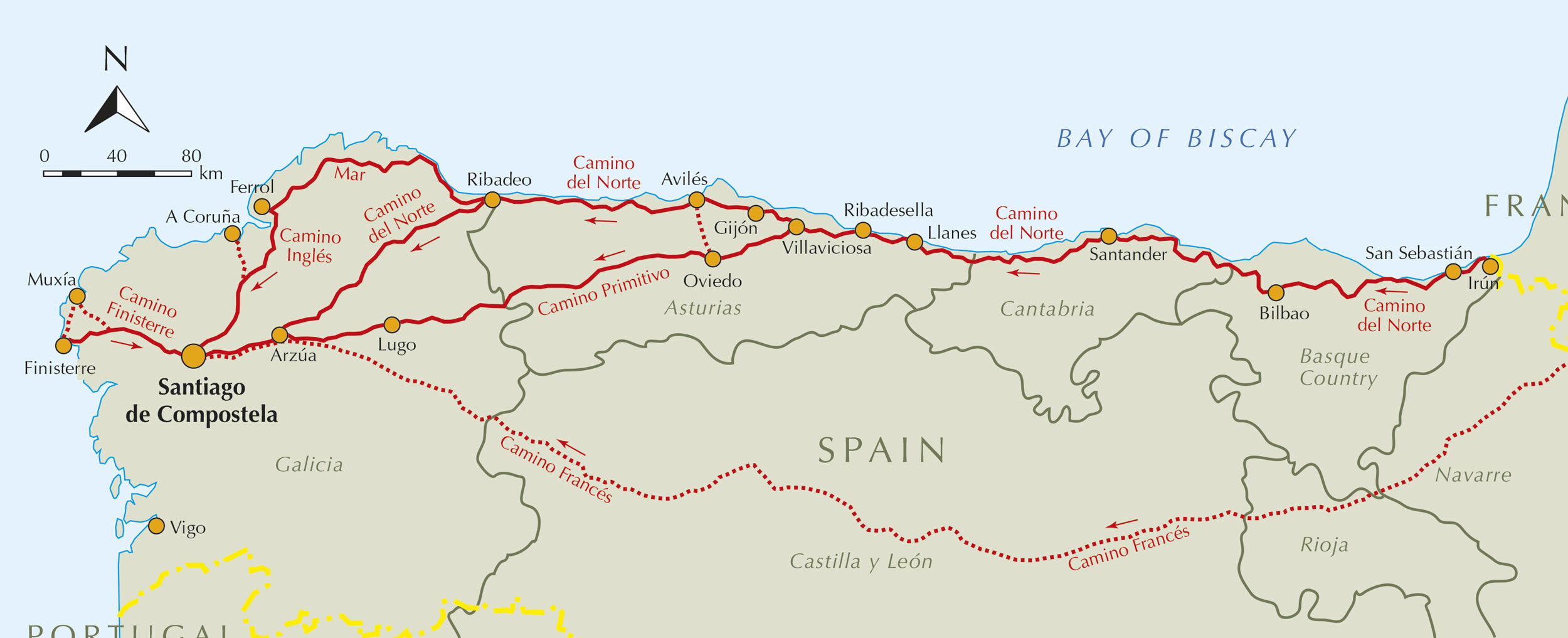 A guidebook to walking the Camino del Norte and Camino Primitivo through northern Spain, popular variants of the Camino de Santiago pilgrimage or Way of St James to Santiago de Compostela. Suitable for most abilities, the 820km (510 mile) Camino del Norte tak...