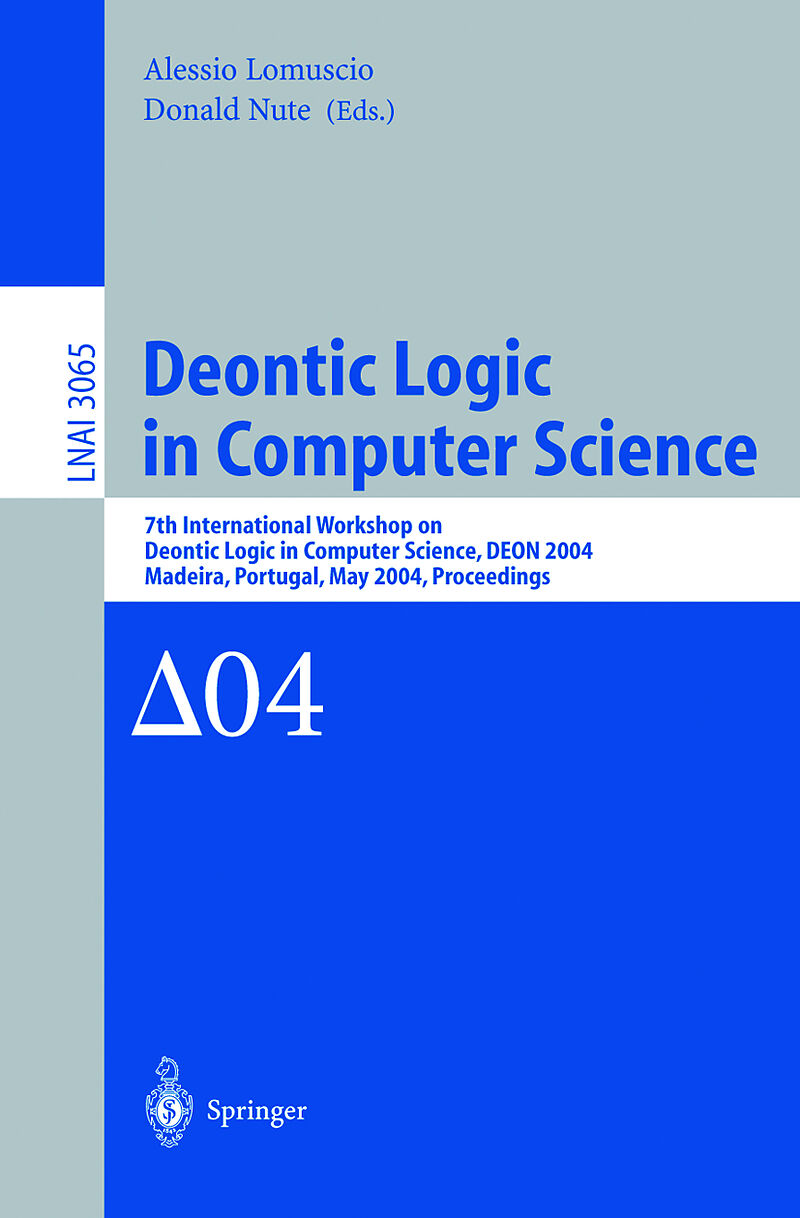 This volume contains the workshop proceedings of DEON 2004, the Seventh International Workshop on Deontic Logic in Computer Science. The DEON workshop series aims at bringing together researchers interested in topics - lated to the use of deontic logic in comp...