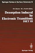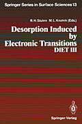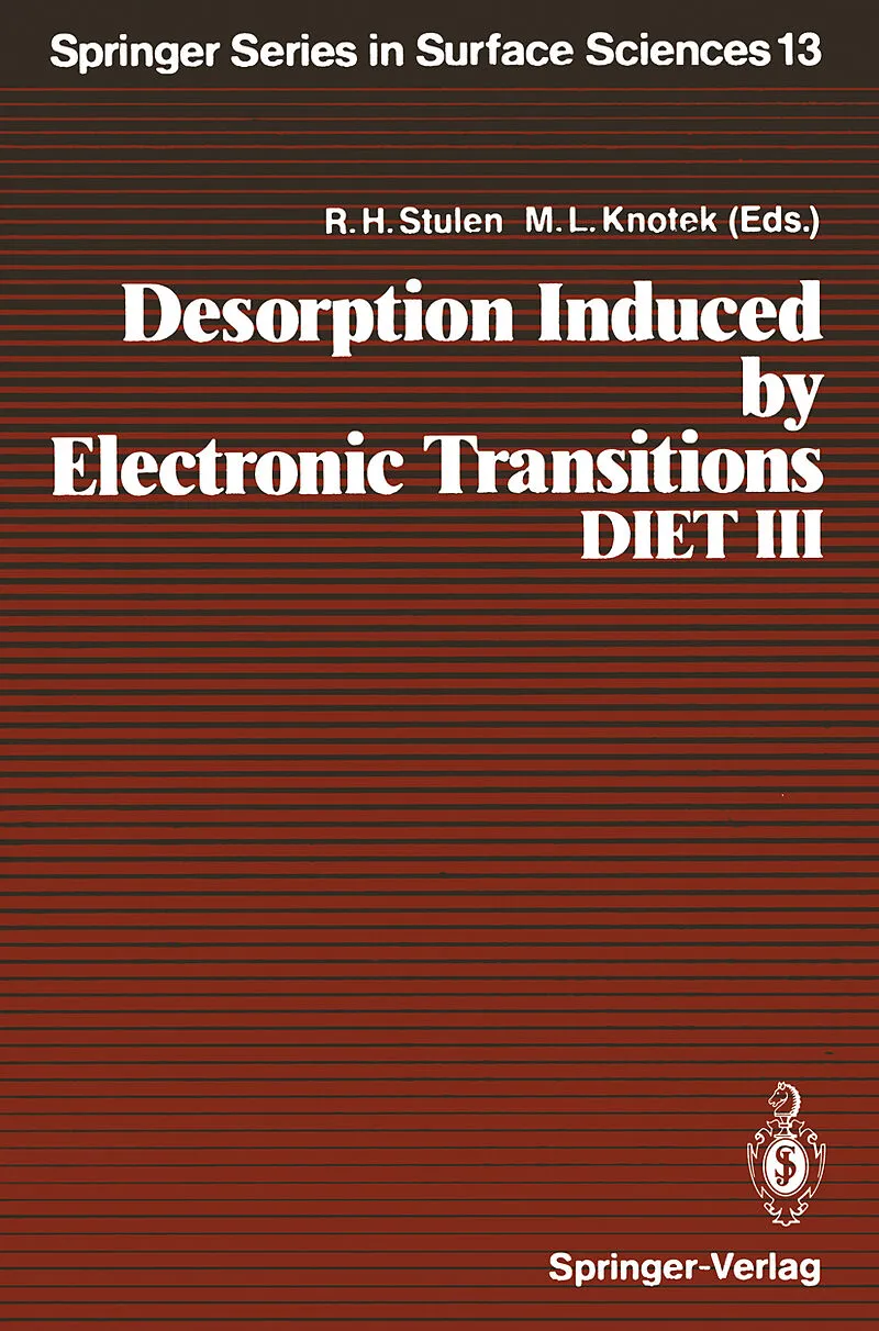 These proceedings are the result of the third international workshop on Desorption Induced by Electronic Transitions, DIET III, which took place on Shelter Island, NY, May. 20-22, 1987. The work contained in this volume is an excellent summary of the current s...These proceedings are the result of the third international workshop on Desorption Induced by Electronic Transitions, DIET III, which took place on Shelter Island, NY, May. 20-22, 1987. The work contained in this volume is an excellent summary of the current status of the field and should be a valuable reference text for both "seasoned" researchers and newcomers in the field of DIET. Based on the success of the meeting it seems clear that interest and enthusiasm in the field is strong. It is also apparent, from the many lively discussions during the meeting, that many unanswered questions (and controversies) remain to be solved. It was particularly pleasing to see many new participants from new and rapidly advancing fields, ranging from gas phase dynamics to semiconductor processing. The resulting cross-fertilization from these separate but related fields is playing an important role in helping us understand desorption processes at solid surfaces. In general, the topics covered during the course of the workshop over lapped those of both DIET I and DIET II. However, clear advances have been made and in general there is a much more sophisticated understand ing of the physics and chemistry of stimulated desorption. Of particular note in this regard is the gas phase research highlighted in this workshop by the work of Nenner et al. , where new results indicate that in the gas phase, photodissociation can precede or compete strongly with autoion ization and other electronic relaxation pathways.