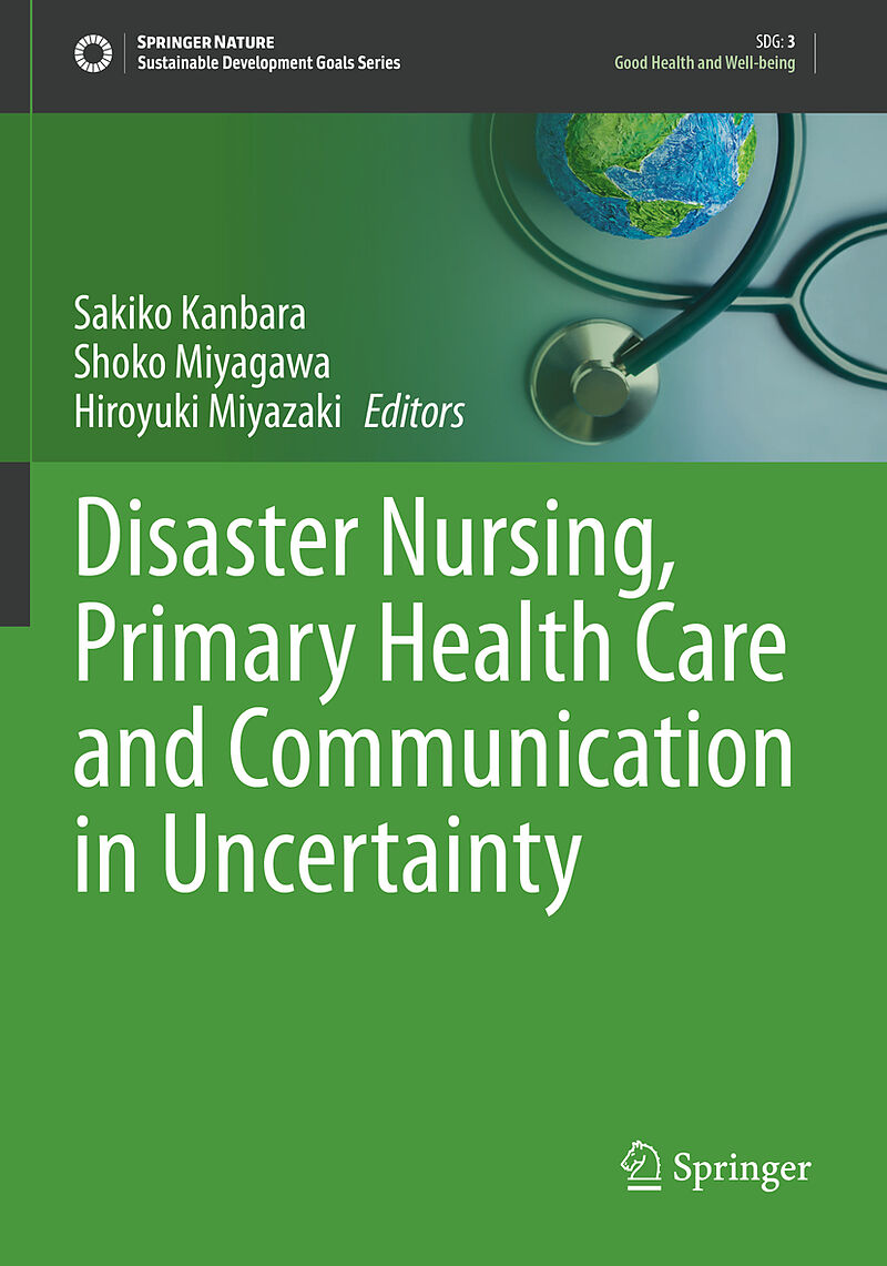 Part 1: Global health and Care for Disaster Risk Reduction.- 1. Disaster Nursing for Sustainable Community.- 2. Disaster and global health issues.- 3. Challenges of Global Health with Nursing.- 4. Care for Disaster Risk Reduction.- 5. Disaster health in shelters in Japan.- 6. Research of Disaster Nursing in Japan 2005-2020.- 7. Nursing Experience on disaster and health emergency.- 8. The Sendai Framework and the Bangkok Principles for Nurses.- 9. History of the Development of Competencies for Disaster Nursing.- 10. Capacity Development and the Instructional Design for Achievement Goal.- 11. Nursing Research on Disaster.- Part 3: Fostering Care in Sustainable Community.- 12. Needs of Cultivating Seamless and Individual Care.- 13. Primary Health Care (PHC), Disaster Risk Reduction (DRR) and Role of a local nurse.- 14. Key Players of Cross-Sectoral Collaboration in DRR.- 15. Roles, Rules, and Tools for National Humanitarian Networks on H-EDRM.- 16. Community resilience, disaster nursing and the UN Sustainable Development Goals.- 17. Caring Ecosystems for Area-Capability.- 18. Big challenge for SDGs: Case Study: COVID-19.- Part 4: Assesing Care for DIsasser RIsk Reduction.- 19. Quantative approach for Assesment Health in Disaster .- 20. Qualitative Approaches to Investigating Health in Disaster: Cases from Nepal and Japan.- 21. Chronological Approach for Disaster Response and Monitoring.- 22. Introduction to EpiNurse.- Part 5:Decision making for people centered H-EDRM.- 23. Risk-based / System-based approach for people centered H-EDRM.- 24. Personal Life Records for Health Decision-Making in Disaster Situations.- 25. Management of Health and Disaster-related Data.- 26. Geographic Information System.- 27. Designing decision support systems in DRR.- 28. Case studies of ICT/ GIS Application for DRR - Way to Forward : Challenges,Ethics.- 29. Locality and Caring in Uncertainty.- 30. Care for Disaster Risk Reduction and Communication: Lessons Learned and Way to Forward.