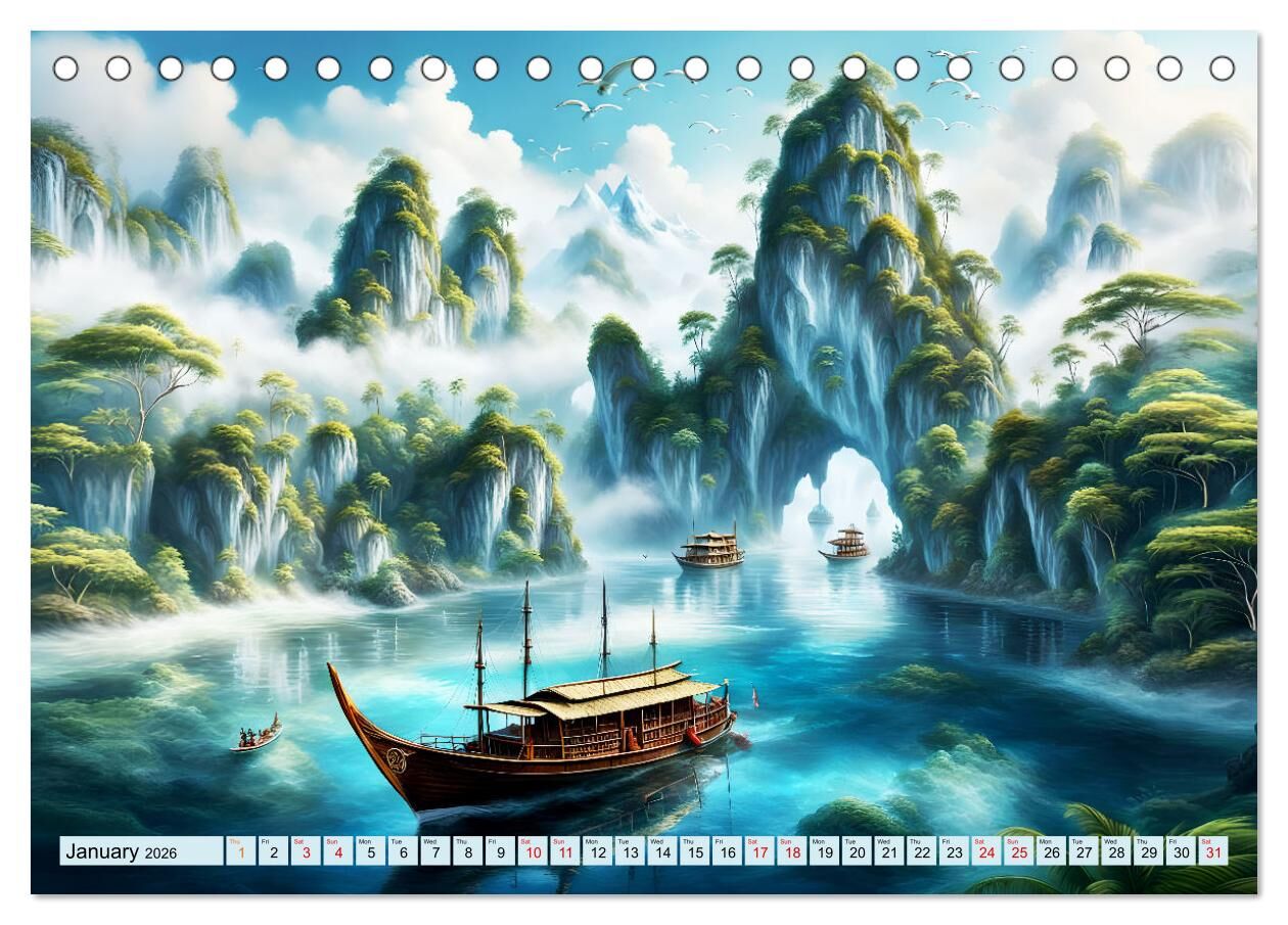 Experience a journey through paradise, designed by artificial intelligence. Each month shows a breathtaking panorama of the unique island world, as vivid and detailed as if you were sailing through this dreamlike landscape yourself. From the emerald green wate...