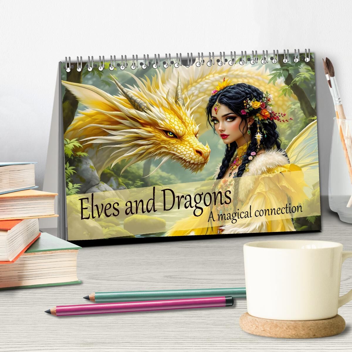 Elves and Dragons - A magical connection (Desk Calendar 2026 DIN A5 landscape), CALVENDO 12 Month DeskCalendar