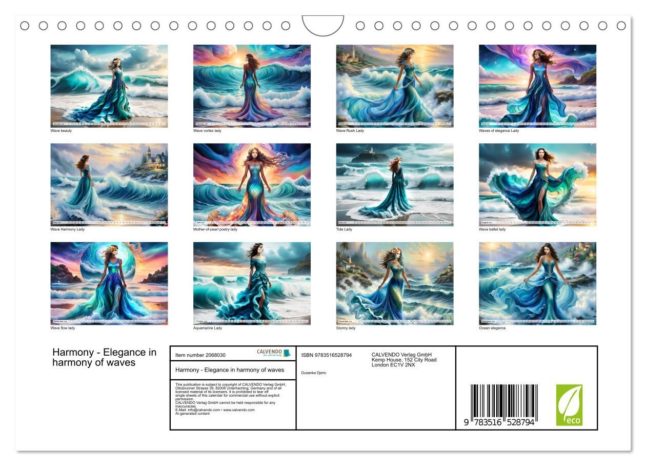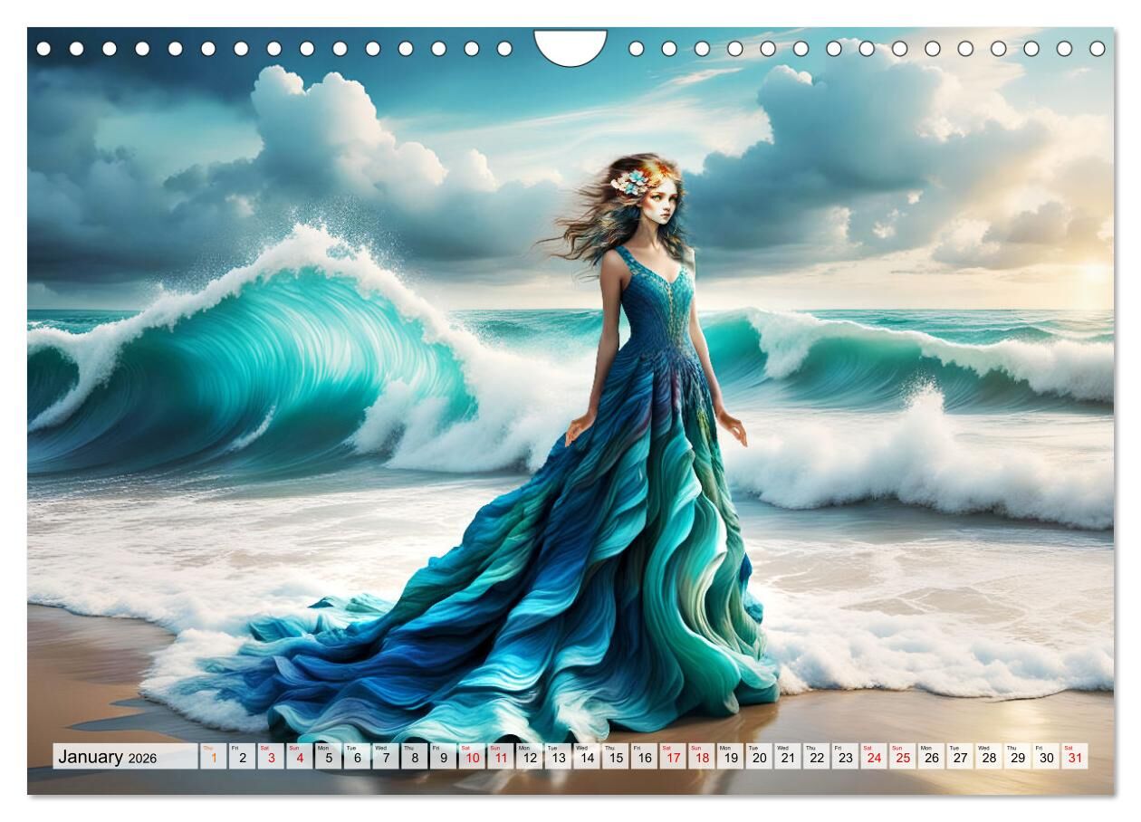 Welcome to the future of art and aesthetics. Our AI-created calendar presents you with the perfect fusion of elegance and the power of nature. Each image shows an elegant woman in a stunning dress that harmonises with the gentle or wild ocean waves. Be mesmeri...
