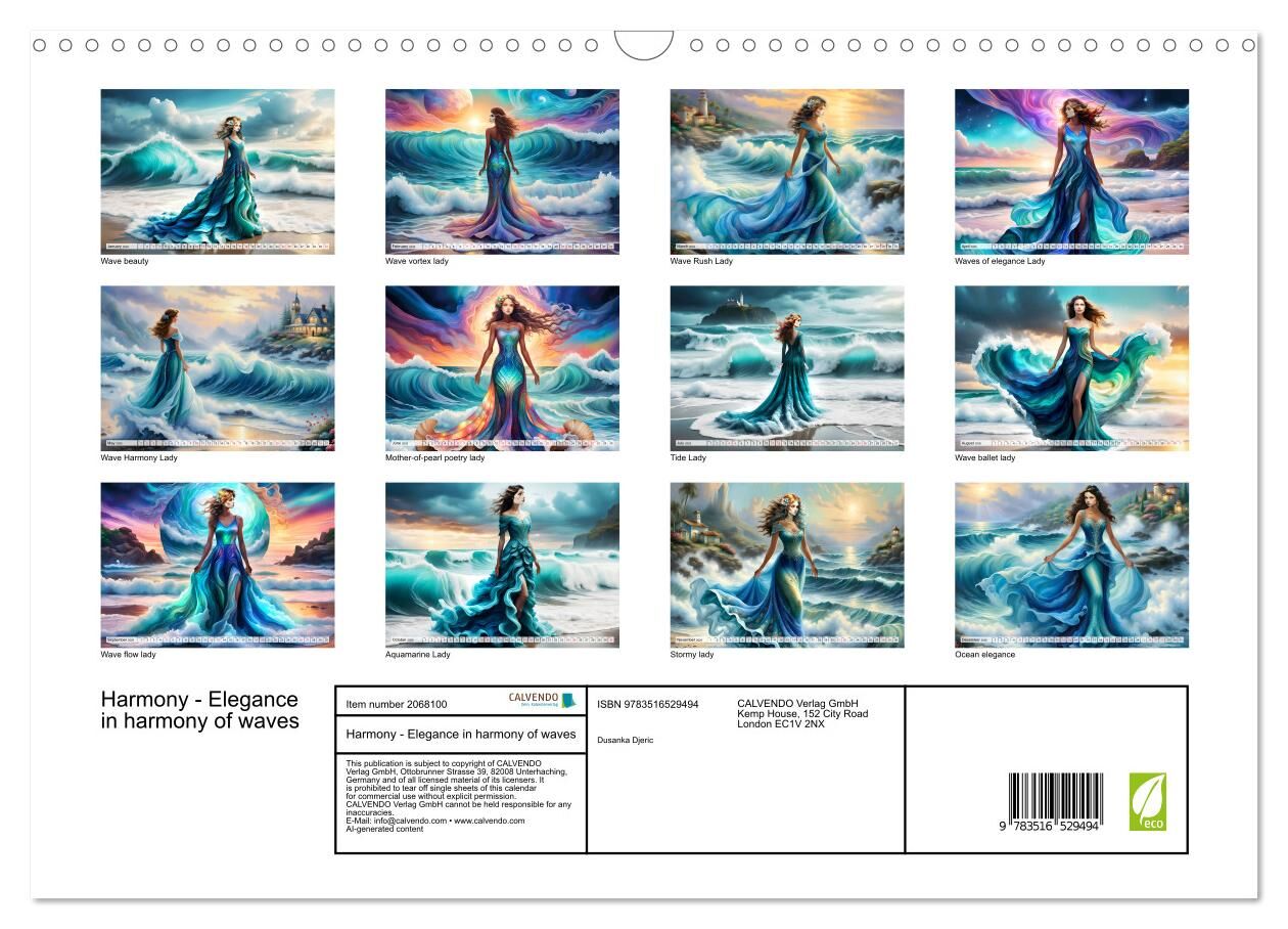 Welcome to the future of art and aesthetics. Our AI-created calendar presents you with the perfect fusion of elegance and the power of nature. Each image shows an elegant woman in a stunning dress that harmonises with the gentle or wild ocean waves. Be mesmeri...