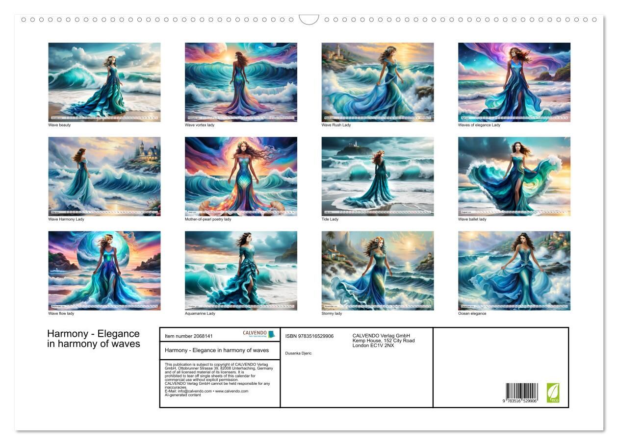 Welcome to the future of art and aesthetics. Our AI-created calendar presents you with the perfect fusion of elegance and the power of nature. Each image shows an elegant woman in a stunning dress that harmonises with the gentle or wild ocean waves. Be mesmeri...