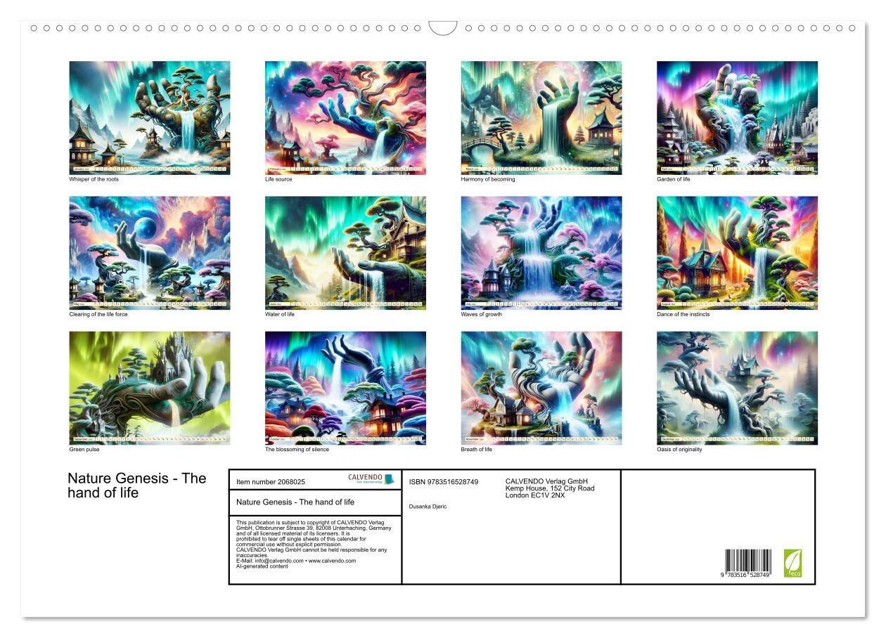 Immerse yourself in the world of a breathtaking calendar created by artificial intelligence. Each page of this masterpiece reveals a majestic hand, from this hand springs a stream of life, a new world. Each image in this calendar is a tribute to the tireless p...