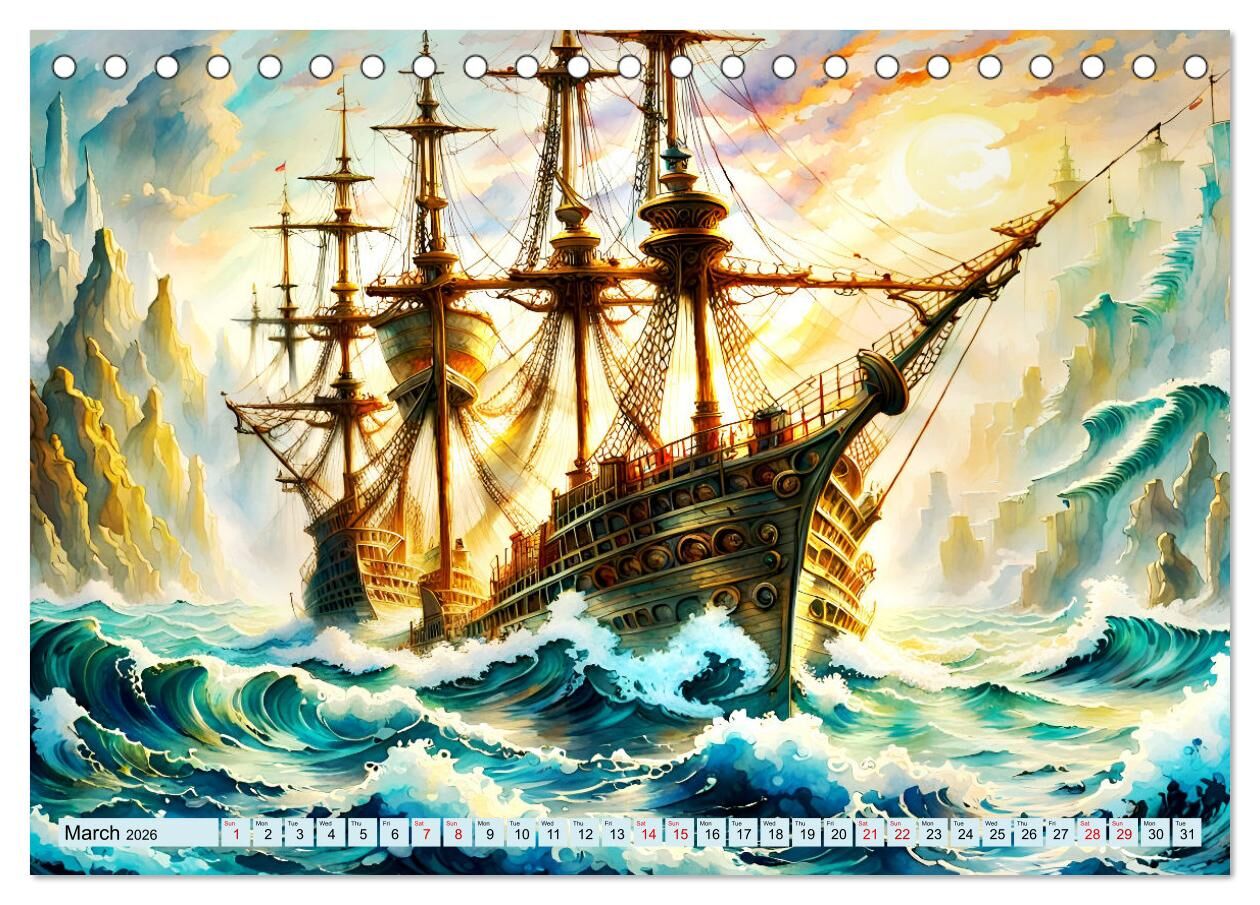 Immerse yourself in a fantastic world full of adventure and magic with our fantasy sailing ship calendar. Experience the breathtaking beauty and magic of this unique creation, created with the help of the author's artificial intelligence and imagination. Be en...