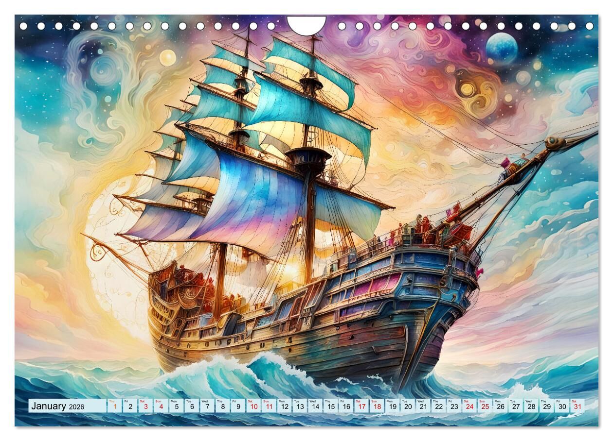 Immerse yourself in a fantastic world full of adventure and magic with our fantasy sailing ship calendar. Experience the breathtaking beauty and magic of this unique creation, created with the help of the author's artificial intelligence and imagination. Be en...