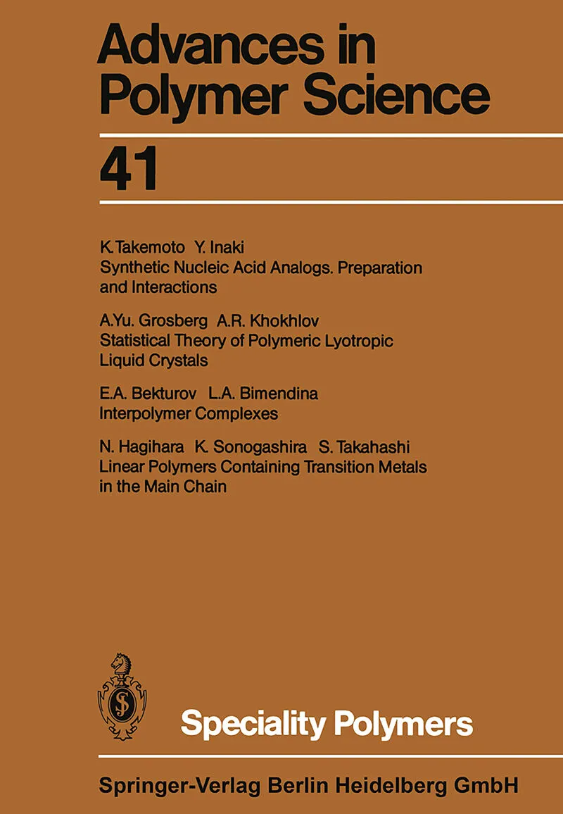 InhaltSynthetic nucleic acid analogs preparation and interaction.- Statistical theory of polymeric lyotropic liquid crystals.- Interpolymer complexes.- Linear polymers containing transition metals in the main chain.