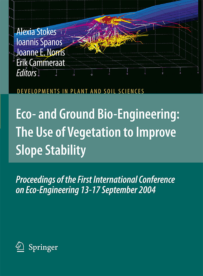 Mechanisms and modelling of root reinforcement on slopes.- The influence of cellulose content on tensile strength in tree roots.- Novel biomechanical analysis of plant roots.- Root reinforcement: analyses and experiments.- Root strength and root area ratio of forest species in Lombardy (Northern Italy).- Biotechnical characteristics of root systems of typical Mediterranean species.- Uprooting resistance of vetiver grass (Vetiveria zizanioides).- Root reinforcement by hawthorn and oak roots on a highway cut-slope in Southern England.- Protection roles of forest and non-forest woody species on slopes in Iran.- Reinforcement of tree roots in slope stability: A case study from the Ozawa slope in Iwate Prefecture, Japan.- Observation and simulation of root reinforcement on abandoned Mediterranean slopes.- Slope stabilisation by perennial 'gramineae' in Southern Italy: plant growth and temporal performance.- Root system morphology and anchorage.- Root system asymmetry of Mediterranean pines.- Root morphology, stem growth and field performance of seedlings of two Mediterranean evergreen oak species raised in different container types.- Stabilising characteristics of New Zealand indigenousriparian colonising plants.- Mechanical resistance of different tree species to rockfall in the French Alps.- Root morphology and strain distribution during tree failure on mountain slopes.- A numerical investigation into the influence of soil type and root architecture on tree anchorage.- Methodology applied to eco- and ground bio-engineering.- SLIP4EX A program for routine slope stability analysis to include the effects of vegetation, reinforcement and hydrological changes.- Site investigation for the effects of vegetation on ground stability.- Mechanics of root-pullout from soil: A novel image and stress analysis procedure.- Dendrogeomorphological observations in a landslide on Tymfristos mountain in Central Greece.- Monitoring ground bio-engineering stabilization of landslides in Lazio Region, Italy.- The use of geostatistical techniques applied to soil conservation of low-density woodlands.- A computer system using two membership functions and T-Norms for the calculation of mountainous watersheds torrential risk: The case of lakes Trixonida and Lisimaxia.- Comparison between two low cost photogrammetric systems: The analytical instrument Adam ASP2000 and the digital photogrammetric station DVP.- Applications at the slope level.- Vegetative-based technologies for erosion control.- Vegetation succession and its consequences for slope stability in SE Spain.- Hedge brush layers and live crib wallsstand development and benefits.- Vegetation dynamics on sediment deposits upstream of bioengineering works in mountainous marly gullies in a Mediterranean climate (Southern Alps, France).- Implementation and monitoring of soil bioengineering measures at a landslide in the Middle Mountains of Nepal.- Beech coppice short-term hydrological balance for simulated rainfall.- Beech coppice leaf cover and gross rainfall qualiquantitative transformation in simulated rainfall events of high intensity.- Effect of repeated fire on plant community recovery in Penteli, central Greece.- Effects of postfire logging on soil and vegetation recovery in a Pinus halepensis Mill. forest of Greece.- The contribution of agrotechnical works following a fire to the protection of forest soils and the regeneration of natural forest.- Decision support systems in eco-engineering: the case of the SDSS.- A decision support system for the evaluation of eco-engineering strategies for slope protection.- Eco- and ground bio-engineering case studies by practitioners.- Land restoration for the Olympic Games in Athens, Greece: Case study Lycabettus slopes (cycle road).- Herbaceous plant cover establishment on highway road sides.- Erosion control by application of hydroseeding methods along the Egnatia Motorway (Greece).- Restoration of slopes disturbed by a motorway company: Egnatia Odos, Greece.- Instability effects of the landforms, in artificially modulated banks along the road ThermopylaeNafpactos (Ftiotida, Greece).- Evaluation of revegetation techniques on mining spoil slopes.- Revegetation on steep slopes and in subalpine areas using biennial cover plants: A review of Huter's technique.- Comparison of revegetation techniques on alpine slopes prone to avalanches and erosion.