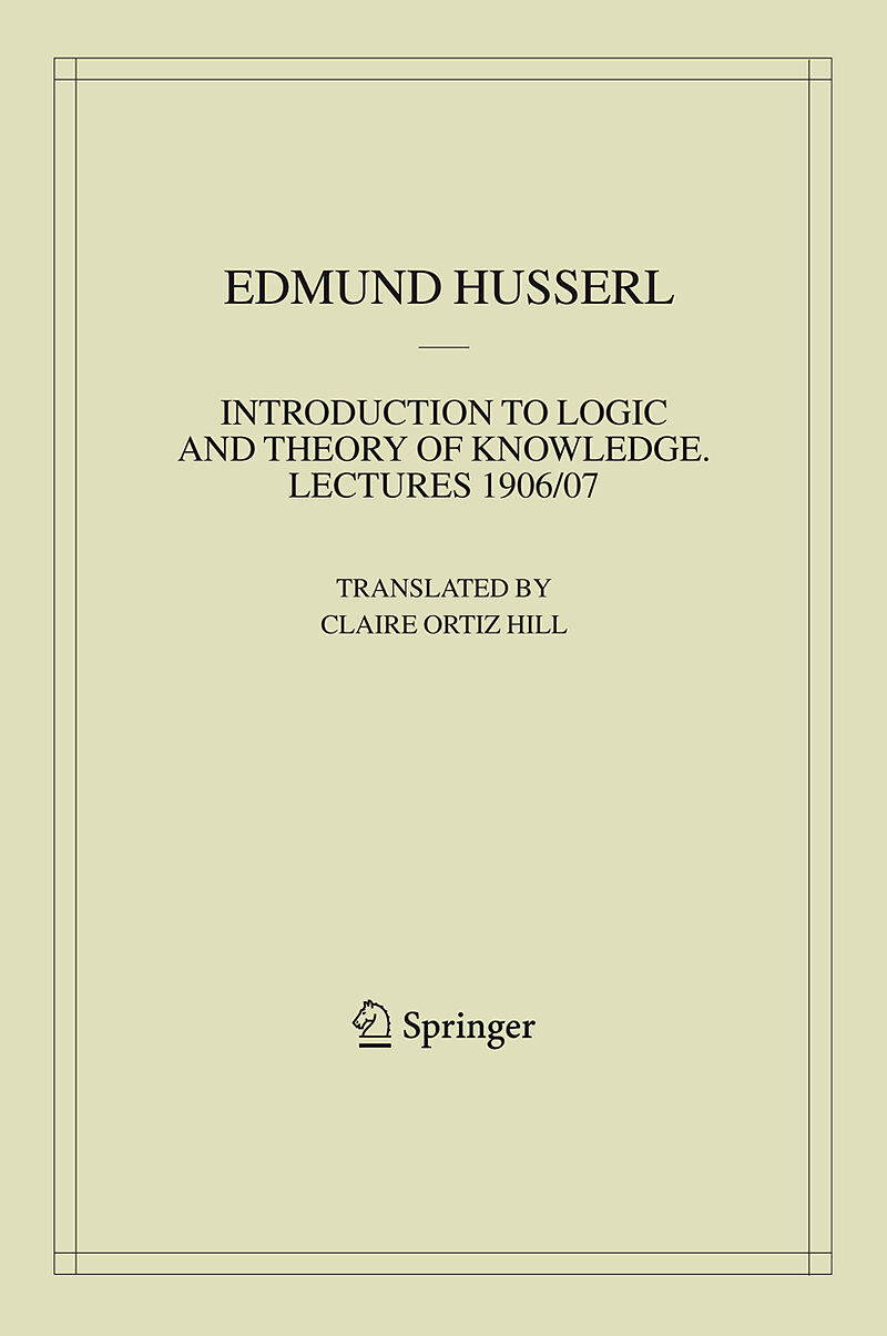 Claire Ortiz Hill The publication of all but a small, unfound, part of the complete text of the lecture course on logic and theory of knowledge that Edmund Husserl gave at Göttingen during the winter semester of 1906/07 became a reality in 1984 with the public...Claire Ortiz Hill The publication of all but a small, unfound, part of the complete text of the lecture course on logic and theory of knowledge that Edmund Husserl gave at Göttingen during the winter semester of 1906/07 became a reality in 1984 with the publication of Einleitung in die Logik und Erkenntnistheorie, Vorlesungen 1906/07 edited by 1 Ullrich Melle. Published in that volume were also 27 appendices containing material selected to complement the content of the main text in significant ways. They provide valuable insight into the evolution of Husserl's thought between the Logical Investigations and Ideas I and, therefore, into the origins of phenomenology. That text and all those appendices but one are translated and published in the present volume. Omitted are only the Personal Notes dated September 25, 1906, November 4, 1907, and March 6, 1908, which were translated by Dallas Willard and published in his translation of Husserl's Early 2 Writings in the Philosophy of Logic and Mathematics. Introduction to Logic and Theory of Knowledge, Lectures 1906/07 provides valuable insight into the development of the ideas fun- mental to phenomenology. Besides shedding considerable light on the genesis of phenomenology, it sheds needed light on many other dimensions of Husserl's thought that have puzzled and challenged scholars.