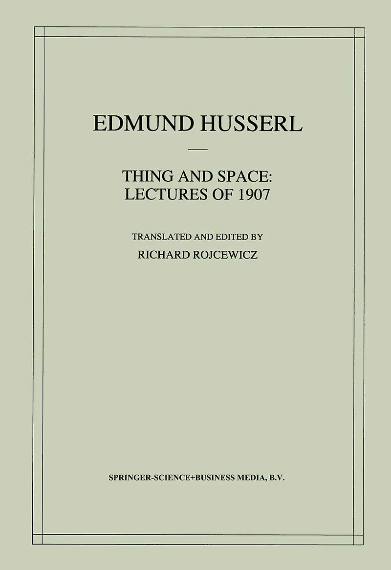 Thing and Space. Lectures of 1907.- Section I The Foundations of a Phenomenological Theory of Perception.- 1. Fundamental Determinations of Outer Perception.- 2. The Methodological Possibility of the Analysis of Perception.- Section II Analysis of Unchanged Outer Perception.- 3. The Elements of Perceptual Correlation.- 4. The Constitution of the Temporal and Spatial Extension of the Appearance.- Section III Analysis of the Kinetic Synthesis of Perception. Changes in Perception and Changes in Appearance.- 5. The Givenness of the Thing at Rest in Continuous Courses of Perception.- 6. The Possibility and Sense of an Adequate Perception of Spatial Things.- 7. Recapitulation. the Analyses of Perception in The Framework of the Phenomenological Reduction.- Section IV The Significance of the Kinaesthetic Systems for the Constitution of the Perceived Object.- 8. The Phenomenological Concept of Kinaesthesis.- 9. The Correlation Between the Visual Field and the Kinaesthetic Sequences.- 10. The Thing as Unity in the Kinaesthetically Motivated Manifold of Appearances.- Section V The Transition from the Oculomotor Field TO Objective Space. the Constitution of Three-Dimensional, Spatial Corporeality.- 11. Amplifications of the Oculomotor field.- 12. The Typicality of the Modifications of Appearances in the Oculomotor Field.- 13. The Constitution of Space Through the Conversion of the Oculomotor Field Into an Expansional and Turning Manifold.- 14. Supplementary Considerations.- Section VI The Constitution of Objective Change.- 15. Qualitative Changes of the Perceptual Object.- 16. The Constitution of Mere Movement.- Final Consideration.- Supplementary Texts.- A. Essays.- I. Systematic Constitution of Space. Husserl's Draft.- A. Sense-fields and kinaesthetic systems.- B. Levels of theconstitution of space.- II. Systematic Constitution of Space. Edith Stein's Elaboration.- §1. Necessity of a location for each body.- §2. Sense-fields and kinaesthetic field.- §3. The significance of the various kinaesthetic systems for the constitution of space.- §4. Significance of kinaesthetic sequences for the constitution of Objective rest and movement.- §4a. I am moved; my body.- §5. Null-orientation of the kinaesthetic systems.- §6. Basic distinction within the kinaesthetic systems and within the constitution of space. Closed visual space and infinite Objective space.- §7. Further distinctions in the kinaesthetic systems and in the constitutive levels.- §8. The pre-eminence of the null-position. The optimum of the visual field.- §9. Interrelations among the kinaesthetic systems in question.- B. Appendices.- Appendix I: Husserl's Critical Remarks on the Course of Thought and the Progression of the Lectures, Compiled by the Editor.- Appendix II (to §1): On the Doctrine of the Levels of Givenness of Things.- Appendix III (to §§20FF.); The Special Position of the Spatial Feature (Determination of Space).- Appendix IV (to §§49FF.): The Kinaesthetic Systems of Monocularity and Binocularity.- Appendix V (to §54): Strata in the Constitution of the Thing.- Appendix VI (to §54): Motivational Nexuses and Apperception.- Appendix VII (to §76): Empty Space.- Appendix VIII (to §78): Problem of the Quality That Fills Space.- Appendix IX (to §§82F.): On the Constitution of Movement and Rest.- Appendix X (to §83): Subjective Self-Movement AND Objective Corporeal Movement.- Appendix XI (to §83): Visual Space and Objective Space.- Appendix XII (to Essay I): On the Constitution of Riemannian Things.- Appendix XIII (to Essay II, §4A): Active and PassiveLocomotion.
