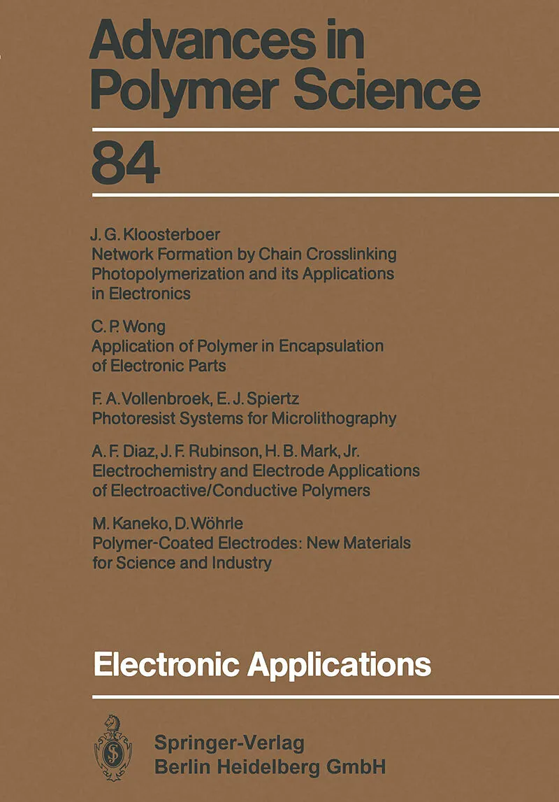 Inhalt Network formation by chain crosslinking photopolymerization and its applications in electronics.- Application of polymer in encapsulation of electronic parts.- Photoresist systems for microlithography.- Electrochemistry and electrode applications of ele...