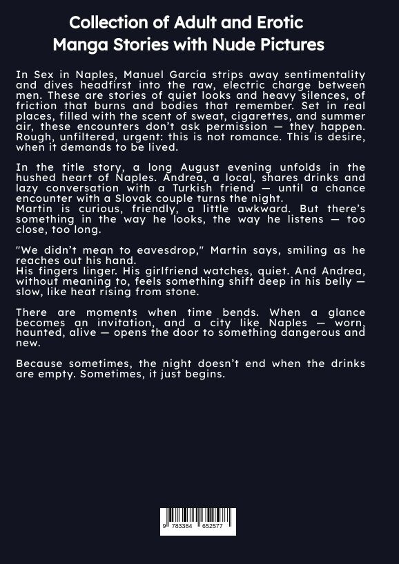 In Sex in Naples, Manuel García strips away sentimentality and dives headfirst into the raw, electric charge between men. These are stories of quiet looks and heavy silences, of friction that burns and bodies that remember. Set in real places, filled with the ...
