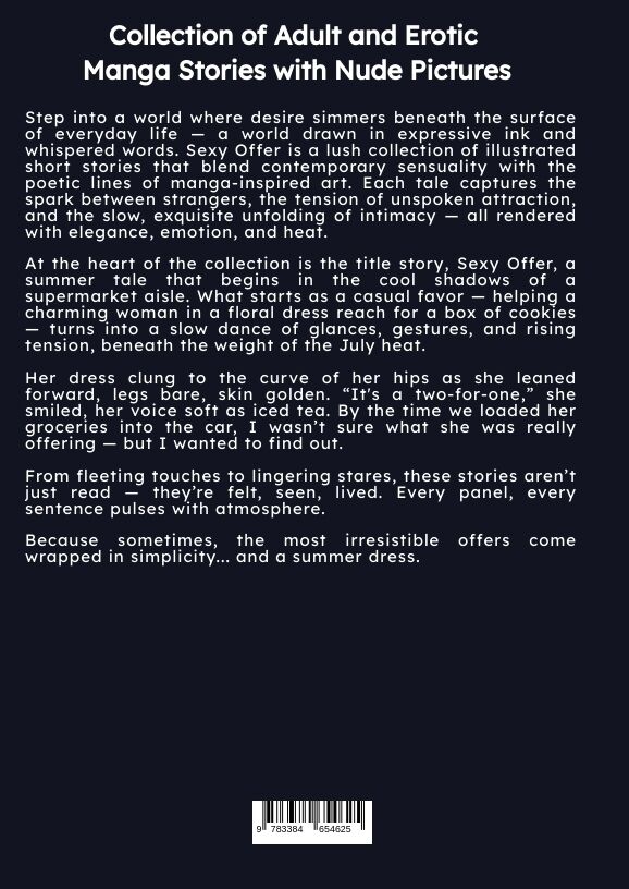 Step into a world where desire simmers beneath the surface of everyday life a world drawn in expressive ink and whispered words. Sexy Offer is a lush collection of illustrated short stories that blend contemporary sensuality with the poetic lines of manga-insp...
