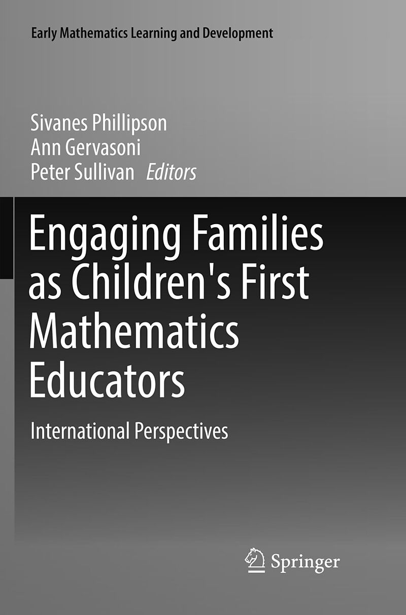 Introduction.- Chapter 1 Engaging families as the first mathematics educators of children.- Key foci and pedagogical actions that support young children's mathematics learning.- Chapter 2 Describing the mathematical intentions of early learning childhood experiences.- Chapter 3 Mathematics with infants and toddlers.- Chapter 4 Enumeration: Counting difficulties are not always related to numbers.- Chapter 5 Discerning and supporting the development of mathematical fundamentals in early years.- Chapter 6 Number stories.- Home interactions and learning experiences that support early mathematical learning.- Chapter 7 Meta-Analysis of the relationship between Home and Family experiences and Young children's early numeracy learning.- Chapter 8 Parental perceptions of access to capitals and early mathematical learning: Some early insights from Numeracy@Home project.- Chapter 9 Involving parents in games and picture books.- Chapter 10 Do Hong Kong parents engage in learning activities conducive to preschool children's mathematics development?.- Family and educator partnerships that support early mathematical learning.- Chapter 11 Working with parents to promote preschool children's numeracy: Teachers' attitudes and beliefs.- Chapter 12 Bringing families and preschool educators together to support young children's learning through noticing, exploring and talking about Mathematics.- Chapter 13 Supporting early mathematics learning: Building mathematical capital through participating in early years swimming.- Chapter 14 Fostering children's everyday mathematical knowledge through caregiver participation in Support Playgroups in Schools.- Conclusion.- Chapter 15 Insights for engaging families as the first mathematics educators of children.