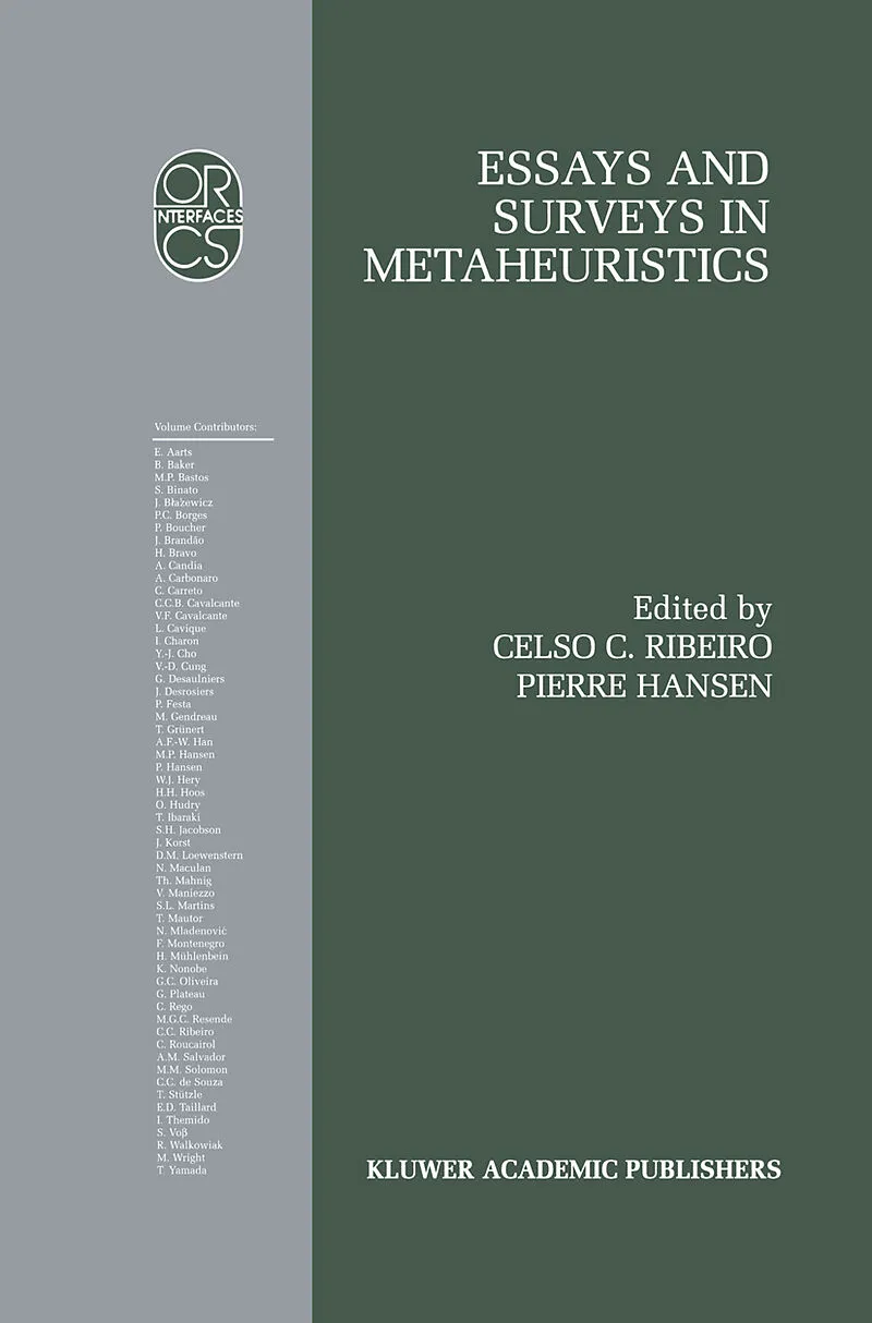 1 Selected Topics in Simulated Annealing.- 2 Reactive Tabu Search with Path-Relinking for the Steiner Problem in Graphs.- 3 A GRASP for Job Shop Scheduling.- 4 A Reactive GRASP for Transmission Network Expansion Planning.- 5 Tabu Search for Two-Dimensional Irregular Cutting.- 6 A Study of Global Convexity for a Multiple Objective Travelling Sales- man Problem.- 7 A Lower Bound Based Meta-Heuristic for the Vehicle Routing Problem.- 8 A Simulated Annealing Approach for Minimum Cost Isolated Failure Immune Networks.- 9 A GRASP Interactive Approach to the Vehicle Routing Problem with Backhauls.- 10 Parallel Cooperative Approaches for the Labor Constrained Scheduling Problem.- 11 A Scatter Search Algorithm for the Maximum Clique Problem.- 12 The Noising Methods: A Survey.- 13 Strategies for the Parallel Implementation of Metaheuristics.- 14 Accelerating Strategies in Column Generation Methods for Vehicle Routing and Crew Scheduling Problems.- 15 GRASP: An Annotated Bibliography.- 16 Recent Advances in Tabu Search.- 17 Lagrangean Tabu Search.- 18 A GIDS Metaheuristic Approach to the Fleet Size and Mix Vehicle Routing Problem.- 19 Developments of Variable Neighborhood Search.- 20 Analyzing the Performance of Local Search Algorithms Using Generalized Hill Climbing Algorithms.- 21 Ant Colony Optimization: An Overview.- 22 Intensification Neighborhoods for Local Search Methods.- 23 New Heuristics for the Euclidean Steiner Problem in Rn.- 24 Mathematical Analysis of Evolutionary Algorithms.- 25 Formulation and Tabu Search Algorithm for the Resource Constrained Project Scheduling Problem.- 26 Analysing the Run-Time Behaviour of Iterated Local Search for the Travelling Salesman Problem.- 27 POPMUSIC Partial Optimization Metaheuristic under Special Intensification Conditions.- 28Subcost-Guided Simulated Annealing.- 29 A Pruning Pattern List Approach to the Permutation Flowshop Scheduling Problem.