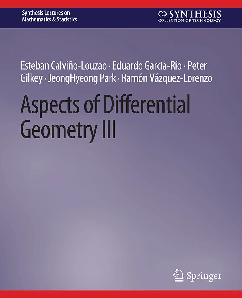 Esteban Calvino-Louzao is a member of the research group in Riemannian Geometry at the Department of Geometry and Topology of the University of Santiago de Compostela (Spain). He received his Ph.D. in 2011 from the University of Santiago under the direction of E. Garcia-Rio and R. Vazquez-Lorenzo. His research specialty is Riemannian and pseudo-Riemannian geometry. He has published more than 20 research articles and booksEduardo Garcia-Rio is a Professor of Mathematics at the University of Santiago de Compostela (Spain). He is a member of the editorial board of Differential Geometry and its Applications and The Journal of Geometric Analysis and leads the research group in Riemannian Geometry at the Department of Geometry and Topology of the University of Santiago de Compostela (Spain). He received his Ph.D. in 1992 from the University of Santiago under the direction of A. Bonome and L. Hervella. His research specialty is Differential Geometry. He has published more than 120 research articles and books.Peter B. Gilkey is a Professor of Mathematics and a member of the Institute of Theoretical Science at the University of Oregon. He is a fellow of the American Mathematical Society and is a member of the editorial board of Results in Mathematics, Differential Geometry and its Applications, and The Journal of Geometric Analysis. He received his Ph.D. in 1972 from Harvard University under the direction of L. Nirenberg. His research specialties are Differential Geometry, Elliptic Partial Differential Equations, and Algebraic topology. He has published more than 275 research articles and books.JeongHyeong Park is a Professor of Mathematics at Sungkyunkwan University and is an associate member of the KIAS (Korea). She received her Ph.D. in 1990 from Kanazawa University in Japan under the direction of H. Kitahara. Her research specialties are spectral geometry of Riemannian submersion and geometric structures on manifolds like eta-Einstein manifoldsand H-contact manifolds. She organized the geometry section of AMC 2013 (The Asian Mathematical Conference 2013), the ICM 2014 satellite conference on Geometric analysis, and geometric structures on manifolds (2016). She has published more than 90 research papers and books.Ramon Vazquez-Lorenzo is a member of the research group in Riemannian Geometry at the Department of Geometry and Topology of the University of Santiago de Compostela (Spain). He is a member of the Spanish Research Network on Relativity and Gravitation. He received his Ph.D. in 1997 from the University of Santiago de Compostela under the direction of E. Garcia-Rio and R. Castro. His research focuses mainly on Differential Geometry, with special emphasis on the study of the curvature and the algebraic properties of curvature operators in the Lorentzian and in the higher signature settings. He has published more than 60 research articles and books.