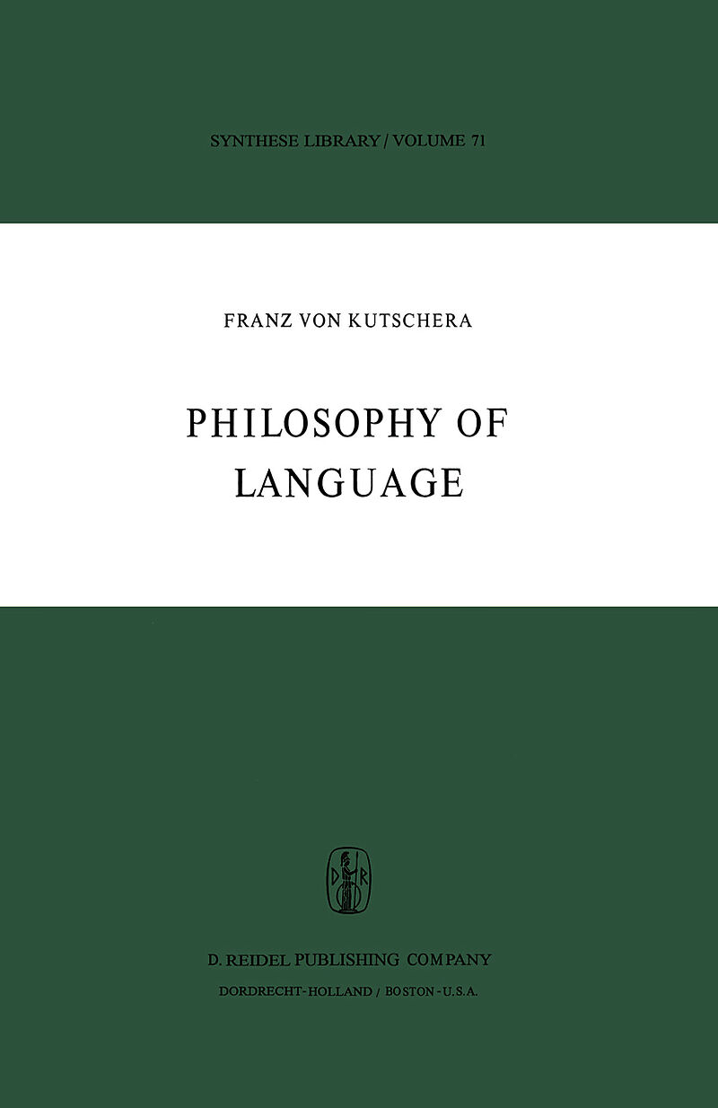 This book has arisen out of lectures I gave in recent years at the Uni versities of Munich and Regensburg, and it is intended to serve as a textbook for courses in the Philosophy of Language. In my lectures I was able to presuppose that the students had taken ...This book has arisen out of lectures I gave in recent years at the Uni versities of Munich and Regensburg, and it is intended to serve as a textbook for courses in the Philosophy of Language. In my lectures I was able to presuppose that the students had taken an introductory course in logic. Some knowledge of logic will also be helpful in studying this book - as it is almost everywhere else in philosophy -, especially in Section 3. 2, but it is no prerequisite. I would like to give my sincere thanks to Prof. Terrell for his excellent translation of the book, which is based on the second, revised and en larged German edition. Regensburg, May 1975 FRANZ VON KUTSCHERA INTRODUCTION Language has become one of philosophy's most important and pressing themes during this century. This preoccupation with language has its ori gins in the most diverse areas of philosophical inquiry.