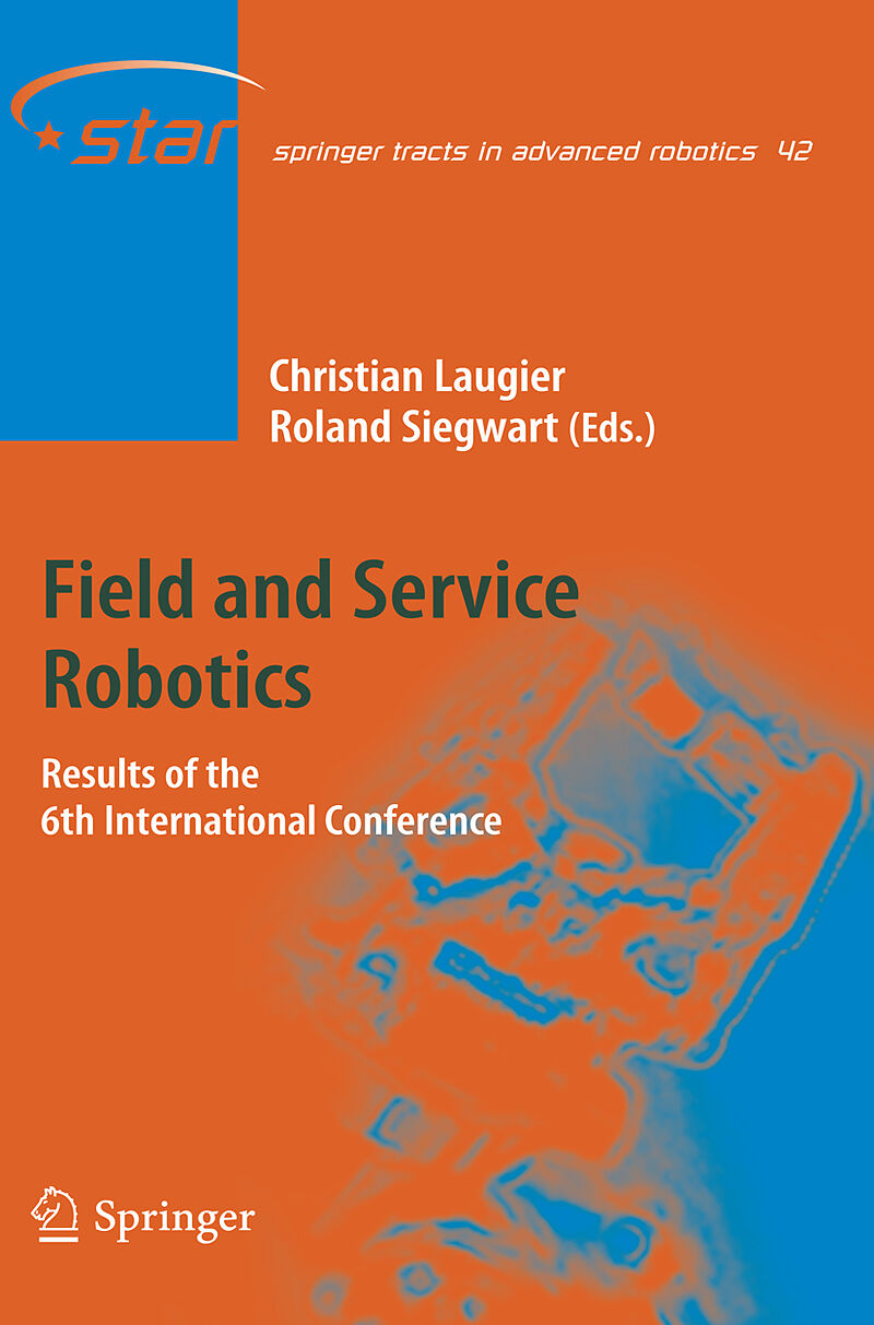 Mapping.- Outdoor Radar Mapping Using Measurement Likelihood Estimation.- Recovering the Shape of Objects in 3D Point Clouds with Partial Occlusions.- Update Policy of Dense Maps: Efficient Algorithms and Sparse Representation.- Assessing Map Quality Using Conditional Random Fields.- Vision for Navigation.- Robust Vision-Based Underwater Target Identification and Homing Using Self-Similar Landmarks.- Vision-Based Handling Tasks for an Autonomous Outdoor Forklift.- Robust Feature Extraction and Matching for Omnidirectional Images.- Dynamic Obstacle Detection Based on Probabilistic Moving Feature Recognition.- Mobile Robot Geometry Initialization from Single Camera.- Underwater Robots and Systems.- A Feature Based Navigation System for an Autonomous Underwater Robot.- Experiments in Navigation and Mapping with a Hovering AUV.- Mobile Robot Sensing for Environmental Applications.- Tracking Environmental Isoclines Using Polygonal Formations of Submersible Autonomous Vehicles.- A Miniature Biomimetic Robotic Fish and Its Realtime Path Planning.- Development of a 5 Degree-of-Freedom Towfish and Its Control Strategy.- Wheeled Robots.- Autonomous Robotic Inspection for Lunar Surface Operations.- Roving Faster Farther Cheaper.- Characterization and Comparison of Rover Locomotion Performance Based on Kinematic Aspects.- Localization and Sensor Fusion.- Robot Position Estimation on a RFID-Tagged Smart Floor.- Monte Carlo Localization in Outdoor Terrains Using Multi-Level Surface Maps.- Estimating Vehicle Position Using Few Range Measurements to a Known Curved Surface.- Sensor Registration for Robotic Applications.- Aerial Navigation and Visual Tracking.- Reactive Collision Avoidance for Unmanned Aerial Vehicles Using Doppler Radar.- Combined Visual and Inertial Navigation for an Unmanned Aerial Vehicle.- Pedestrian Shape Extraction by Means of Active Contours.- Teleoperation.- The Small Outdoor Rover MERLIN and Its Assistance System for Tele-operations.- Visually-Guided Robot Navigation: From Artificial to Natural Landmarks.- An Advanced Teleoperation Testbed.- Teleoperation of a Surgical Robot Via Airborne Wireless Radio and Transatlantic Internet Links.- SLAM.- SIFT Based Graphical SLAM on a Packbot.- Look-Ahead Proposals for Robust Grid-Based SLAM.- Tradeoffs in SLAM with Sparse Information Filters.- Robust Real-Time Local Laser Scanner Registration with Uncertainty Estimation.- A FastSLAM Algorithm Based on the Unscented Filtering with Adaptive Selective Resampling.- Tree Measurement and Simultaneous Localization and Mapping System for Forest Harvesters.- Learning and Scene Estimation.- Modelling Smooth Paths Using Gaussian Processes.- Data-Driven Identification of Group Dynamics for Motion Prediction and Control.- Unsupervised Detection of Artificial Objects in Outdoor Environments.- Online Learning of Multiple Perceptual Models for Navigation in Unknown Terrain.- Multirobot Systems.- Implementation of Formation Transition System Using Synchronization in a Mobile Robot Group.- Coordinated Search in Cluttered Environments Using Range from Multiple Robots.- A Plan Manager for Multi-robot Systems.- Development of a Networked Robotic System for Disaster Mitigation.- Cooperative Localization for Multi-robot Incorporating Proprioceptive/Exteroceptive Position Sensors.- Field Robotics - Systems and Applications.- Experiments in Autonomous Reversing of a Tractor-Trailer System.- ATRS - A Technology-Based Solution to Automobility for Wheelchair Users.- Design and Validation of a Mobile Robot for Power Line Inspection and Maintenance.- Kinematics andSensor and Control Systems of the Fully Automated Facade Cleaning Robot SIRIUSc for Fraunhofer Headquarters in Munich.- Automated Steam Turbine Straddle Root Disc Head Inspection.- Design and Field Testing of an Autonomous Underground Tramming System.- Autonomous Fruit Picking Machine: A Robotic Apple Harvester.- Standing Assistance System for Rehabilitation Walker.- Magnetic Wall Climbing Robot for Thin Surfaces with Specific Obstacles.- Picking up an Unknown Object through Autonomous Modeling and Grasp Planning by a Mobile Manipulator.- Path Planning.- An Architecture for Automated Driving in Urban Environments.- State Space Sampling of Feasible Motions for High Performance Mobile Robot Navigation in Highly Constrained Environments.