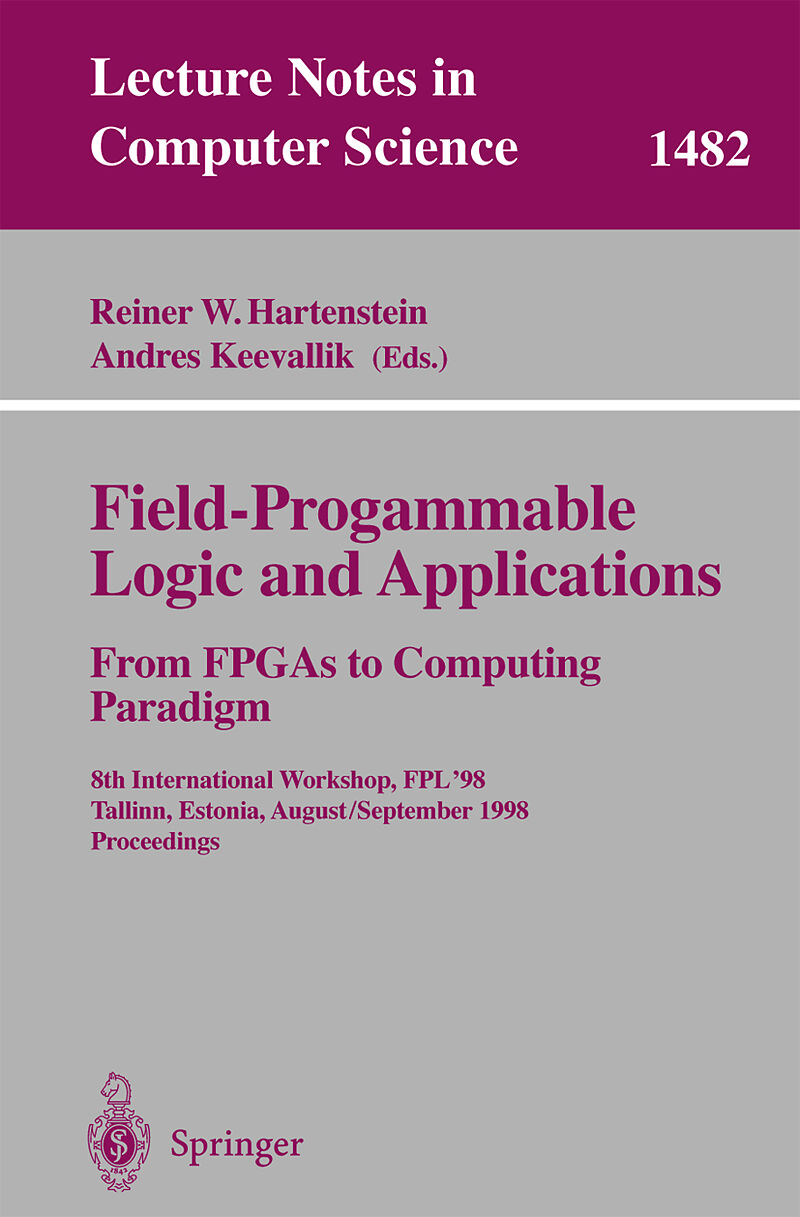 This book constitutes the refereed proceedings of the 8th International Workshop on Field-Programmable Logics and Applications, FPL '98, held in Tallinn, Estonia, in August/September 1998. The 39 revised full papers presented were carefully selected for inclus...This book constitutes the refereed proceedings of the 8th International Workshop on Field-Programmable Logics and Applications, FPL '98, held in Tallinn, Estonia, in August/September 1998.