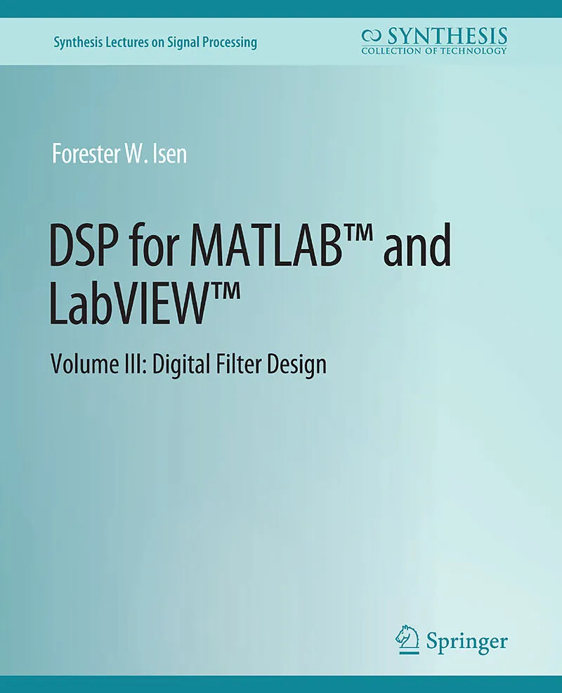This book is Volume III of the series DSP for MATLAB and LabVIEW . Volume III covers digital filter design, including the specific topics of FIR design via windowed-ideal-lowpass filter, FIR highpass, bandpass, and bandstop filter design from windowed-ideal lowpass filters, FIR design using the transition-band-optimized Frequency Sampling technique (implemented by Inverse-DFT or Cosine/Sine Summation Formulas), design of equiripple FIRs of all standard types including Hilbert Transformers and Differentiators via the Remez Exchange Algorithm, design of Butterworth, Chebyshev (Types I and II), and Elliptic analog prototype lowpass filters, conversion of analog lowpass prototype filters to highpass, bandpass, and bandstop filters, and conversion of analog filters to digital filters using the Impulse Invariance and Bilinear Transform techniques. Certain filter topologies specific to FIRs are also discussed, as are two simple FIR types, the Comb and Moving Average filters. The entire series consists of four volumes that collectively cover basic digital signal processing in a practical and accessible manner, but which nonetheless include all essential foundation mathematics. As the series title implies, the scripts (of which there are more than 200) described in the text and supplied in code form here will run on both MATLAB and LabVIEW . The text for all volumes contains many examples, and many useful computational scripts, augmented by demonstration scripts and LabVIEW Virtual Instruments (VIs) that can be run to illustrate various signal processing concepts graphically on the user's computer screen. Volume I consists of four chapters that collectively set forth a brief overview of the field of digital signal processing, useful signals and concepts (including convolution, recursion, difference equations, LTI systems, etc), conversion from the continuous to discrete domain and back (i.e., analog-to-digital and digital-to-analog conversion), aliasing, the Nyquist rate, normalized frequency, sample rate conversion and Mu-law compression, and signal processing principles including correlation, the correlation sequence, the Real DFT, correlation by convolution, matched filtering, simple FIR filters, and simple IIR filters. Chapter four of Volume I, in particular, provides an intuitive or ""first principle"" understanding of how digital filtering and frequency transforms work. Volume II provides detailed coverage of discrete frequency transforms, including a brief overview of common frequency transforms, both discrete and continuous, followed by detailed treatments of the Discrete Time Fourier Transform (DTFT), the z-Transform (including definition and properties, the inverse z-transform, frequency response via z-transform…