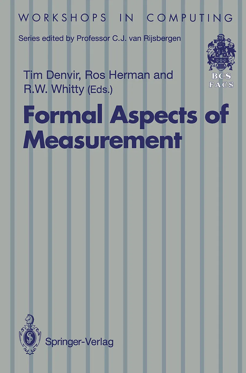 This book contains the eight invited papers presented at the workshop on Formal Aspects of Measurement held at South Bank University on 5th May 1991, organised by the British Computer Society's Special Interest Group on Formal Aspects of Computer Science (FACS...This book contains the eight invited papers presented at the workshop on Formal Aspects of Measurement held at South Bank University on 5th May 1991, organised by the British Computer Society's Special Interest Group on Formal Aspects of Computer Science (FACS). In addition, there are five papers which have been included because of their relevance to the subject of the workshop. The book represents something of a landmark in software engineering research. The British Computer Society's Special Interest Group on Formal Aspects of Computer Science (FACS) has an established reputa tion among researchers in formal methods of software specification, design and validation. These researchers have not in the past paid much attention to software measurement. Perhaps software measurement re search was felt to have emphasised its management potential at the expense of proper scientific foundations? At any rate, for the FACS group to host a workshop in this field is recognition of the significant body of formal measurement theories and techniques which has now become available to software engineers.